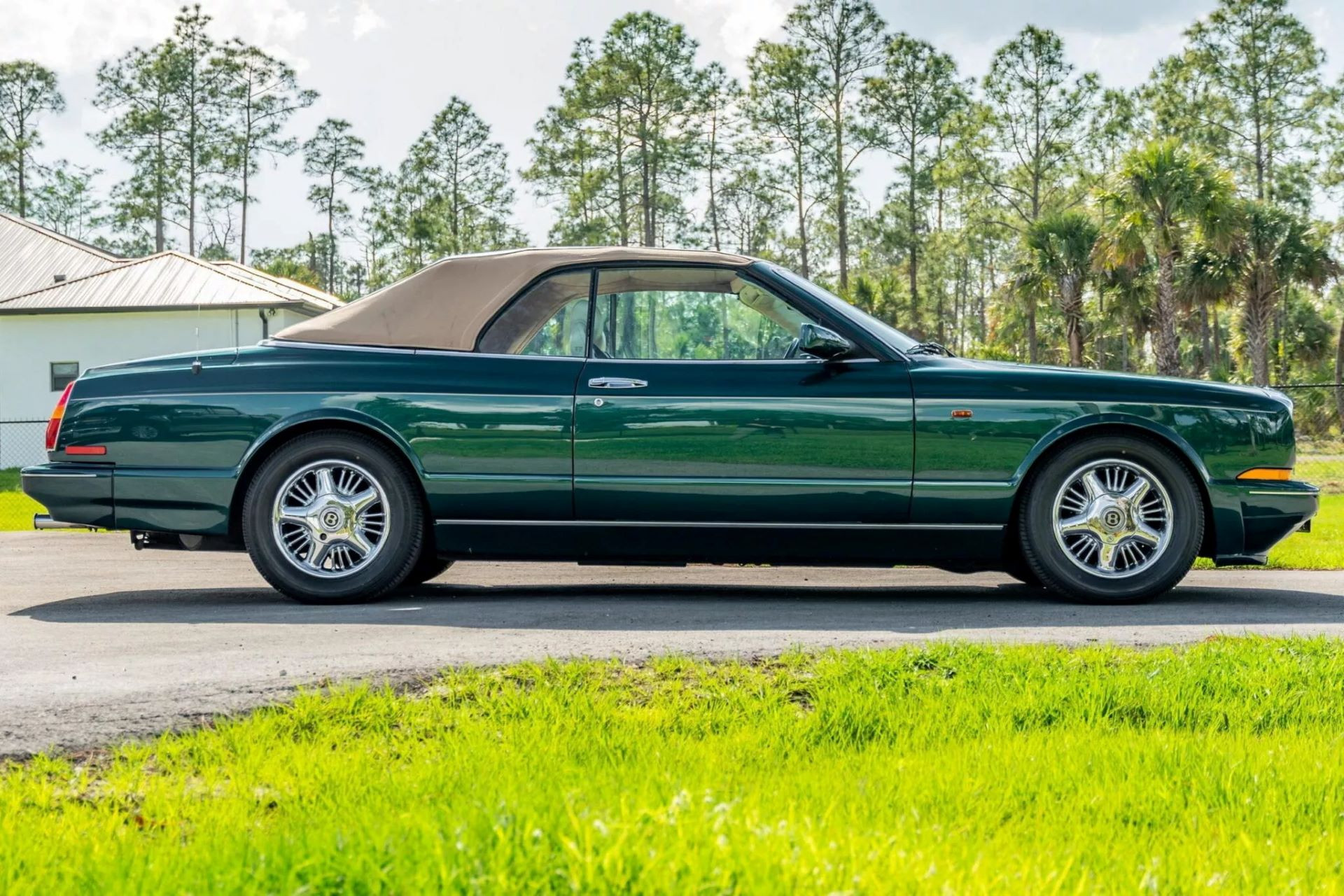 Phải công nhận, chiếc Bentley Azure này vẫn giữ được khí chất quý tộc: thân xe sơn màu xanh lục quý phái, cổ điển kết hợp nội thất da màu be, mui xếp điều khiển điện và những đường nét thiết kế không thể nhầm lẫn với bất kỳ thứ gì ngoài một Bentley "thuần chất". Gỗ thật được khảm khắp cabin, toát lên phong thái thủ công đặc trưng của Crewe - đại bản doanh của Bentley.