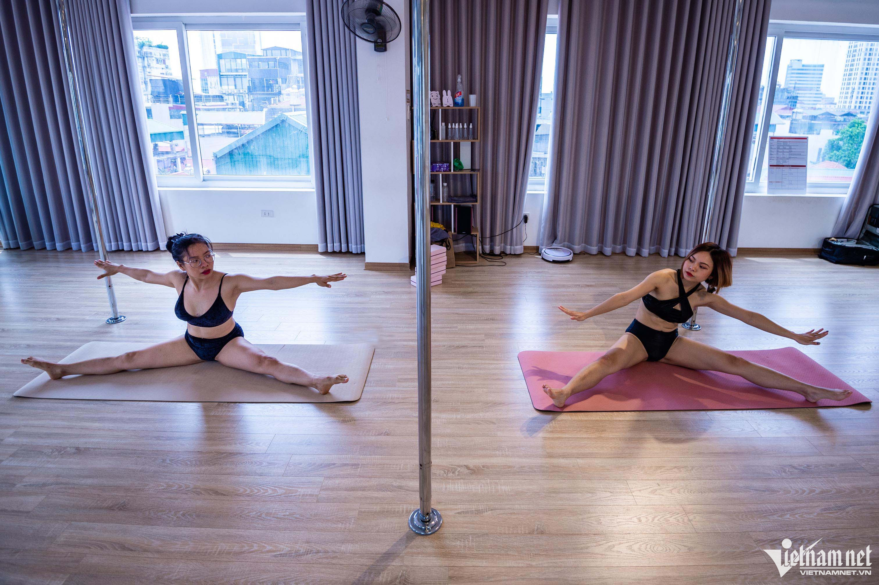 Một buổi tập múa cột của Châu. Trước khi vào cuộc, cô dành 30 phút để khởi động. Điều này giúp tăng tuần hoàn máu, làm nóng cơ, ép dẻo... cũng như giúp cơ thể dần làm quen với những động tác để hạn chế xảy ra chấn thương.