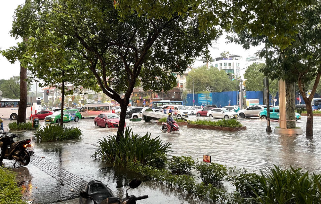 Trước đó, lúc 14h30 cùng ngày, Đài Khí tượng thuỷ văn khu vực Nam Bộ phát thông báo theo dõi trên ảnh mây vệ tinh, ảnh ra-đa thời tiết và định vị sét cho thấy vùng mây giông đang phát triển và gây mưa kèm giông, sét trên khu vực Cần Giờ, Bình Chánh, huyện Nhà Bè, quận 7, quận 8, quận 1 và các quận trung tâm, TP Thủ Đức.