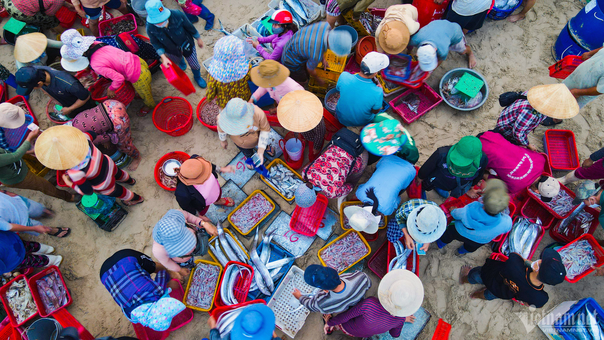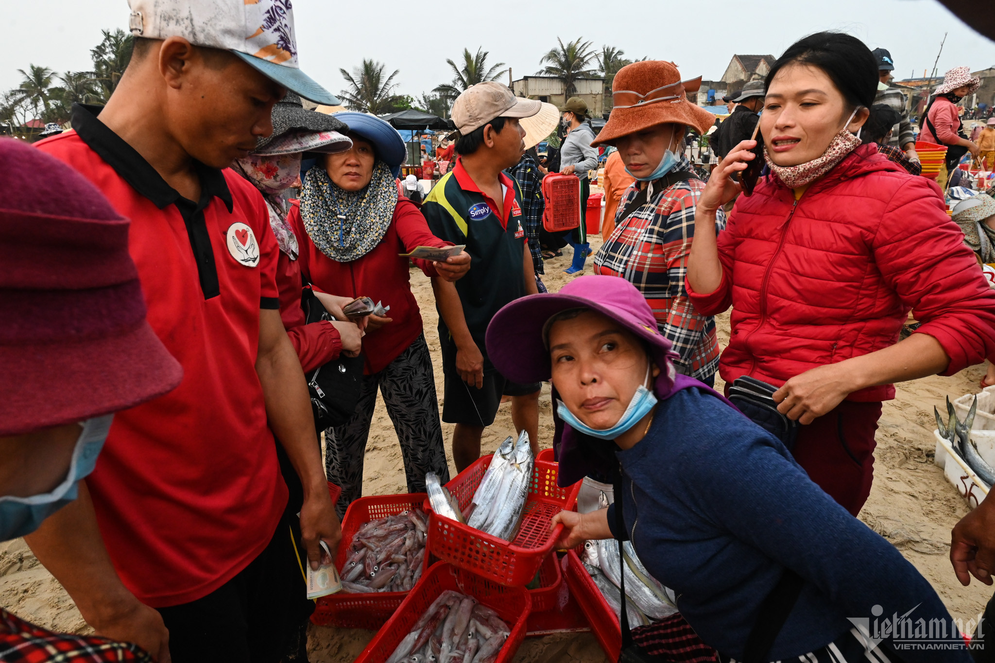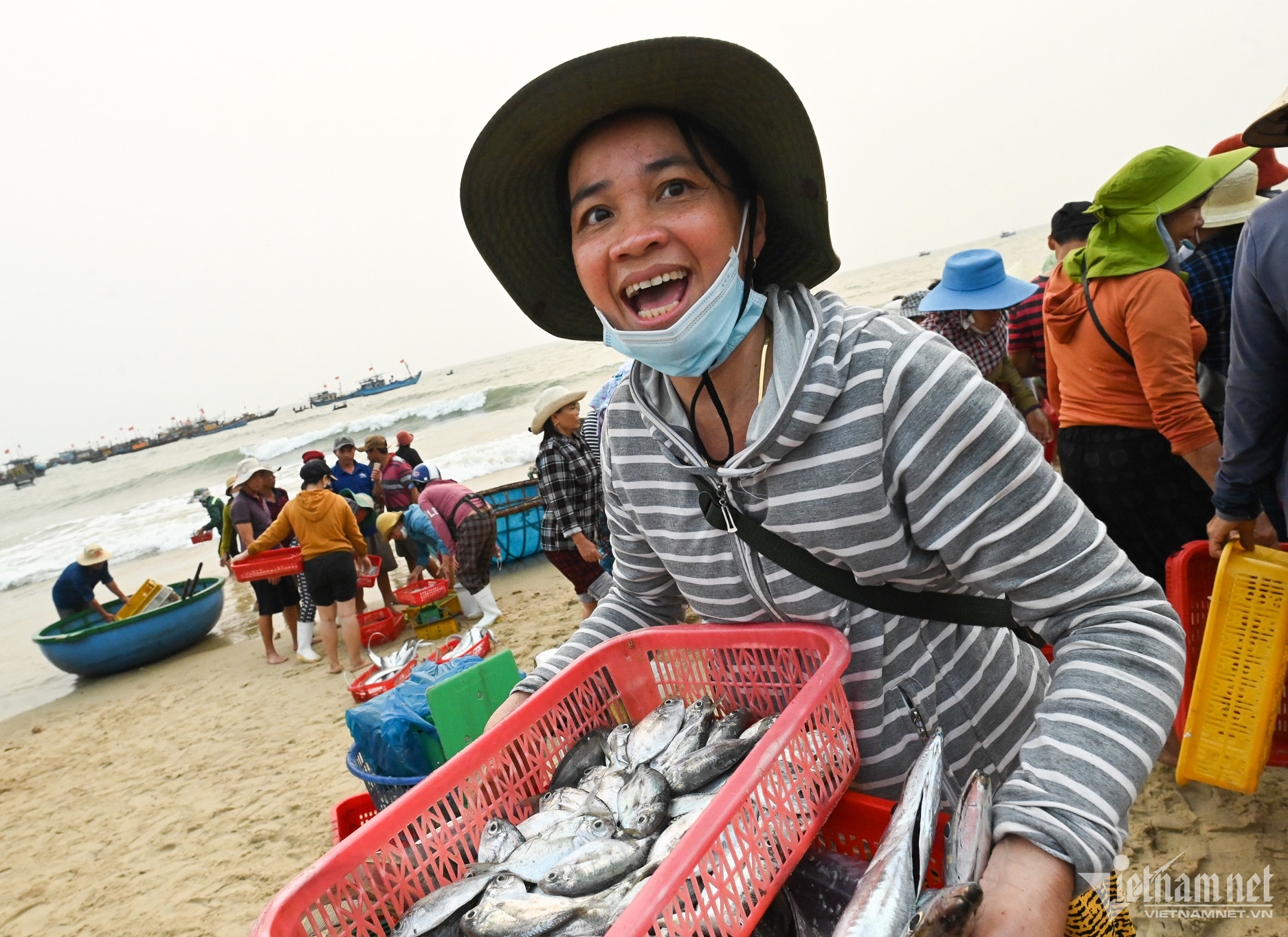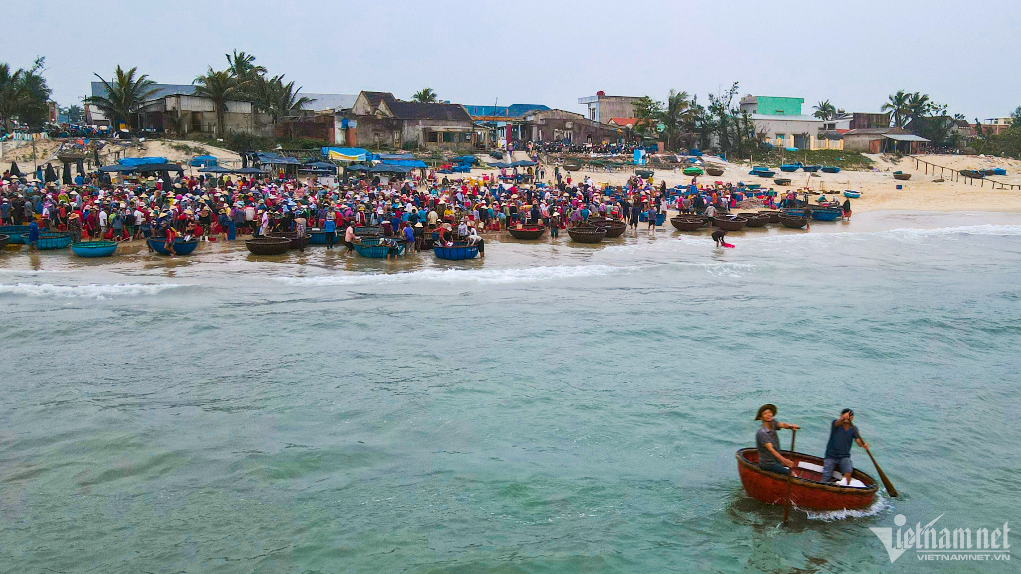 Khi những chiếc thuyền thúng vừa chớm chạm bờ, người mua chen nhau chạy tới, hối hả đón từng xô cá mới, mua những mẻ hải sản tươi ngon, gấp gáp mặc cả lên xuống… Tiếng hò nhau trả giá, cười nói hòa vào âm thanh sóng biển tạo nên không khí ít nơi nào có được.