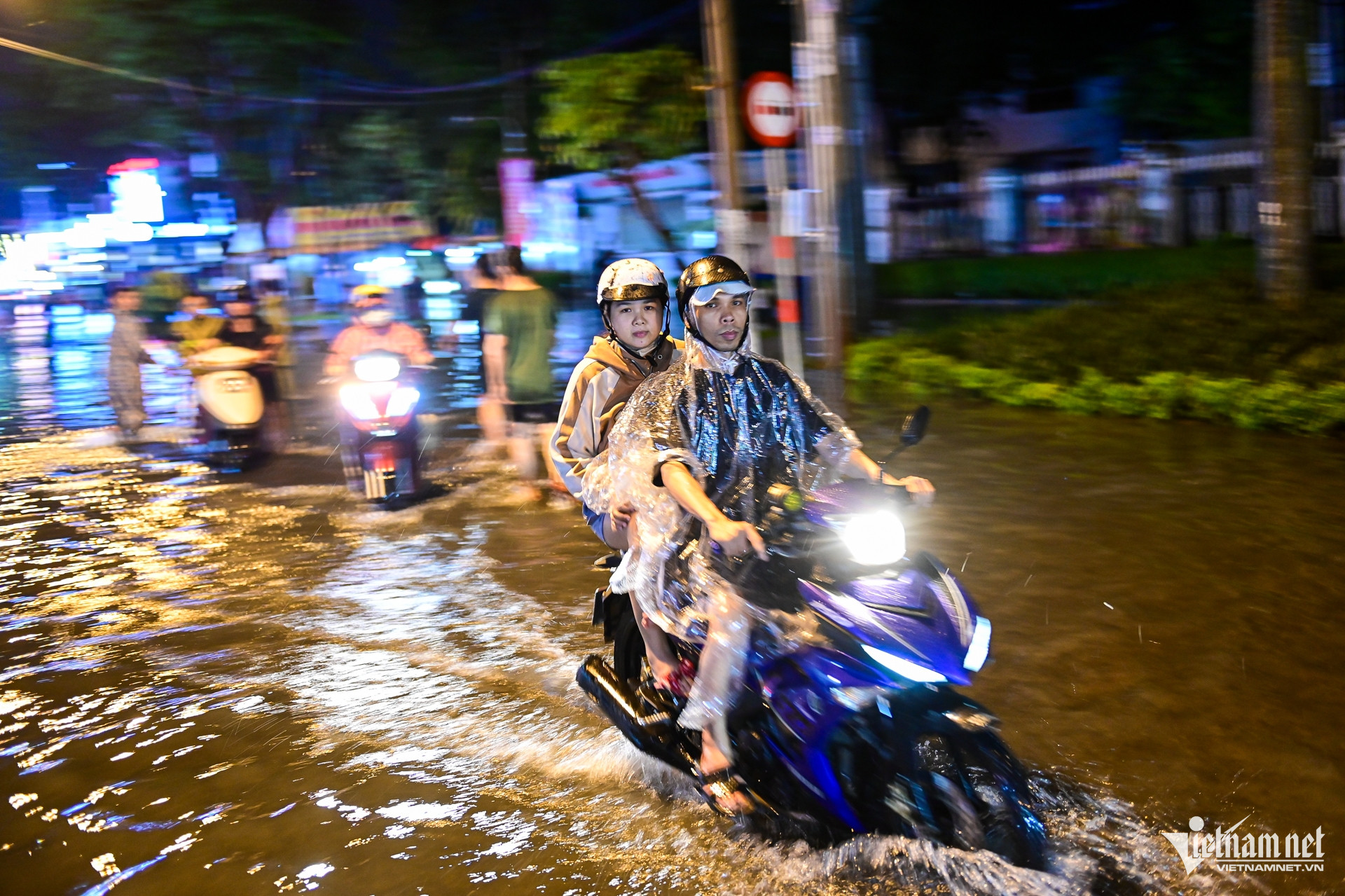 Ghi nhận tại khu vực TP Thủ Đức cũ, các tuyến đường như Nguyễn Duy Trinh, Quốc Hương, Đỗ Xuân Hợp, Tô Ngọc Vân... xảy ra ngập úng nặng. Nước dâng cao đến gần nửa mét, nhấn chìm hàng loạt xe máy, ô tô và khiến việc di chuyển vô cùng khó khăn.
