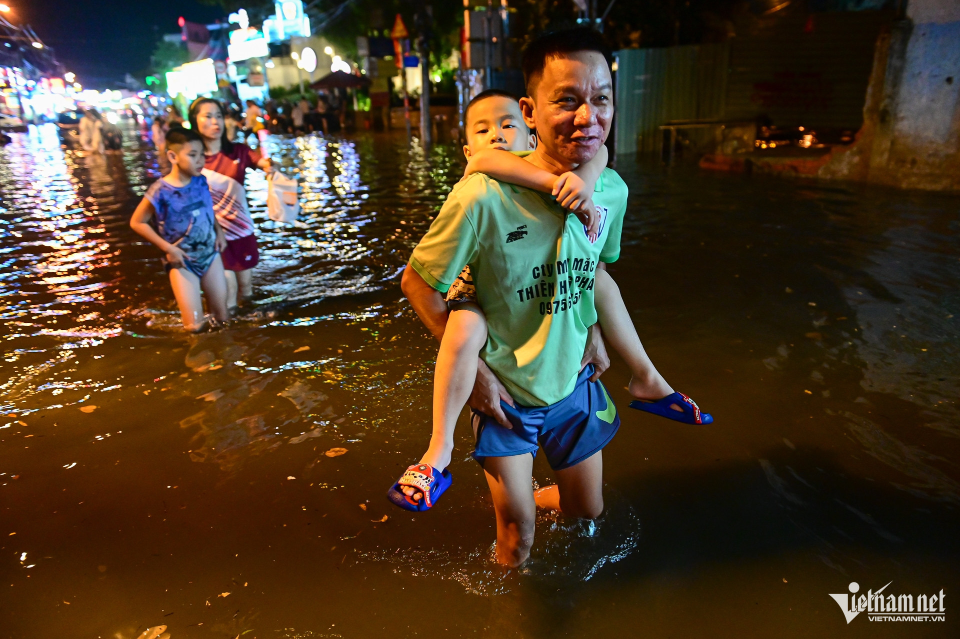 Nhiều người phải di chuyển lên vỉa hè chờ nước rút.