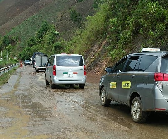Do trời mưa lớn từ chiều tối 31/5 đến sáng 2/6 đã gây ra sạt lở đất đá từ taluy dương xuống lòng đường QL4G, đoạn bản Tà Cọ, xã Sốp Cộp khiến các phương tiện bị chôn chân tại chỗ.