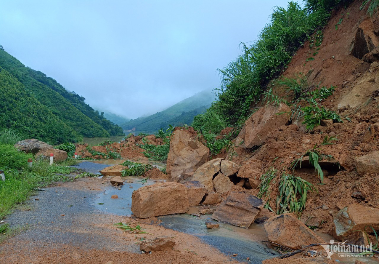 “Có khoảng 10 điểm sạt lở xuất hiện rải rác trên Tỉnh lộ 160, thuộc địa phận các thôn Nậm Tông, Cô Tông, Bản Vàng… Hiện chưa có số liệu thống kê nhưng ước tính lên đến hàng nghìn mét khối đất, đá”, ông Điều cho hay.