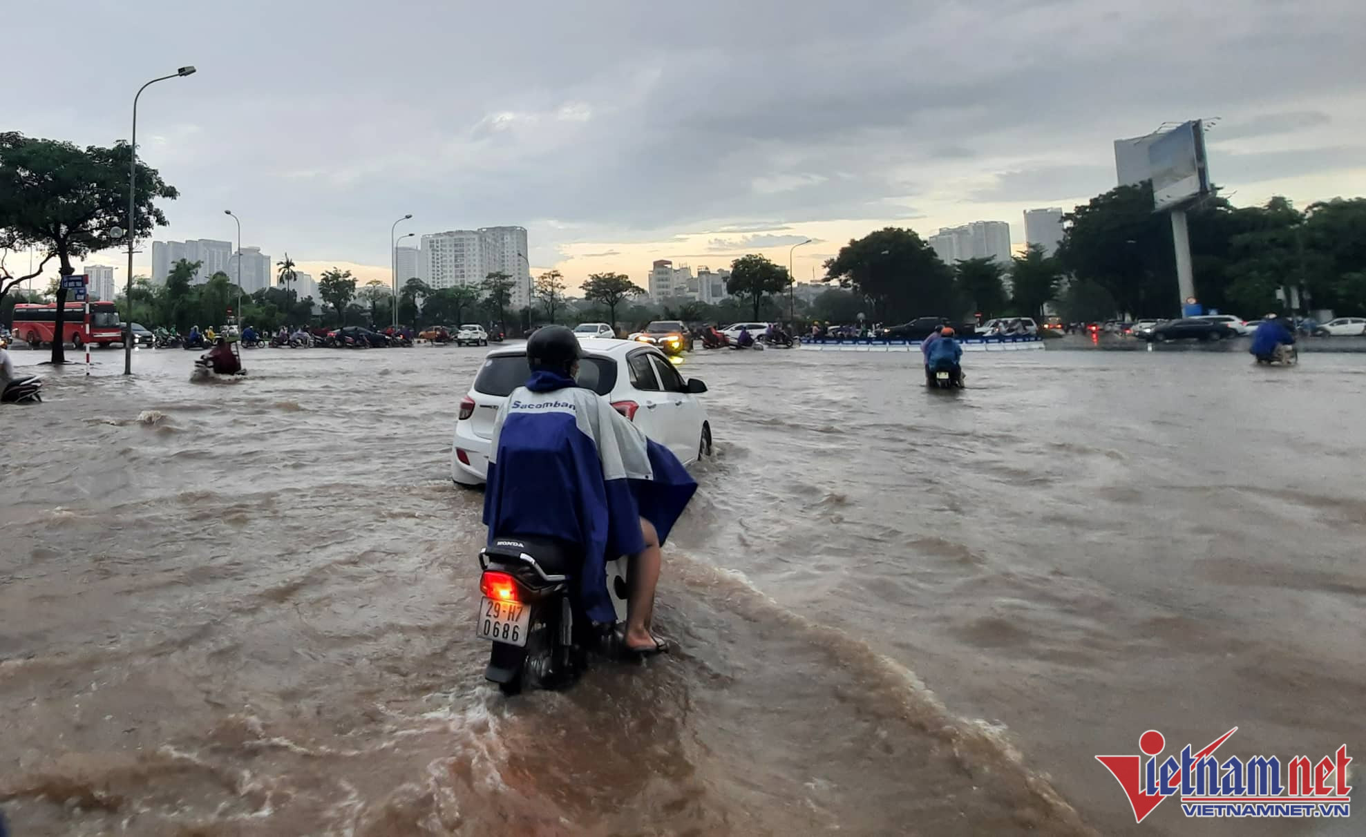 Phố Hà Nội thành sông, nghìn phương tiện chôn chân nhìn nước rút