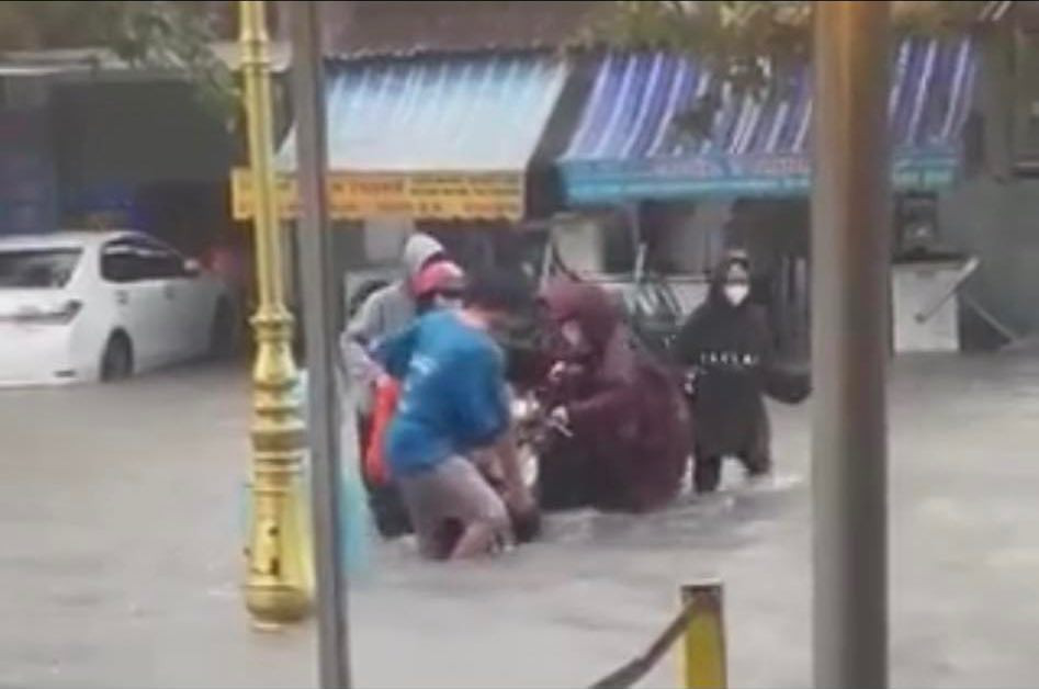 Cơn mưa lớn kéo dài vào giờ cao điểm nên lượng phương tiện đổ dồn ra quốc lộ 1 để tránh ngập nên xảy ra tình trạng ùn tắc kéo dài.