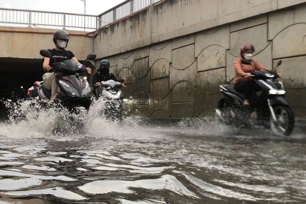 Ngoài mưa lớn, triều cường vượt báo động III với mức đo được tại trạm Nhà Bè lúc 4h30 sáng là 1,67m; trạm Phú An lúc 6h là 1,64m. Do mưa kết hợp triều cường khiến một số khu vực trũng thấp kém khả năng tiêu thoát nước bị ngập.