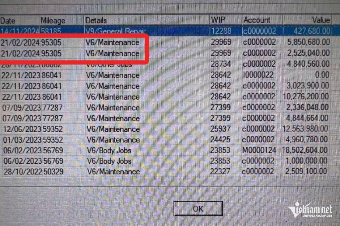 "Theo dữ liệu bảo dưỡng của hãng, ODO của xe hiển thị 95.305km vào tháng 2/2024. Điều này đồng nghĩa, khi tôi mua xe vào tháng 6/2024, số km thực tế có thể đã đạt hơn 100.000km, gấp đôi so với con số 51.432km mà showroom quảng cáo. Sau khi phát hiện sự việc, tôi lập tức liên hệ với phía showroom N.D. để phản ánh và yêu cầu một phương án giải quyết thỏa đáng. Tuy nhiên, phía showroom lại tỏ ra thiếu thiện chí", chủ chiếc Mercedes-Benz GLC 200 kể.