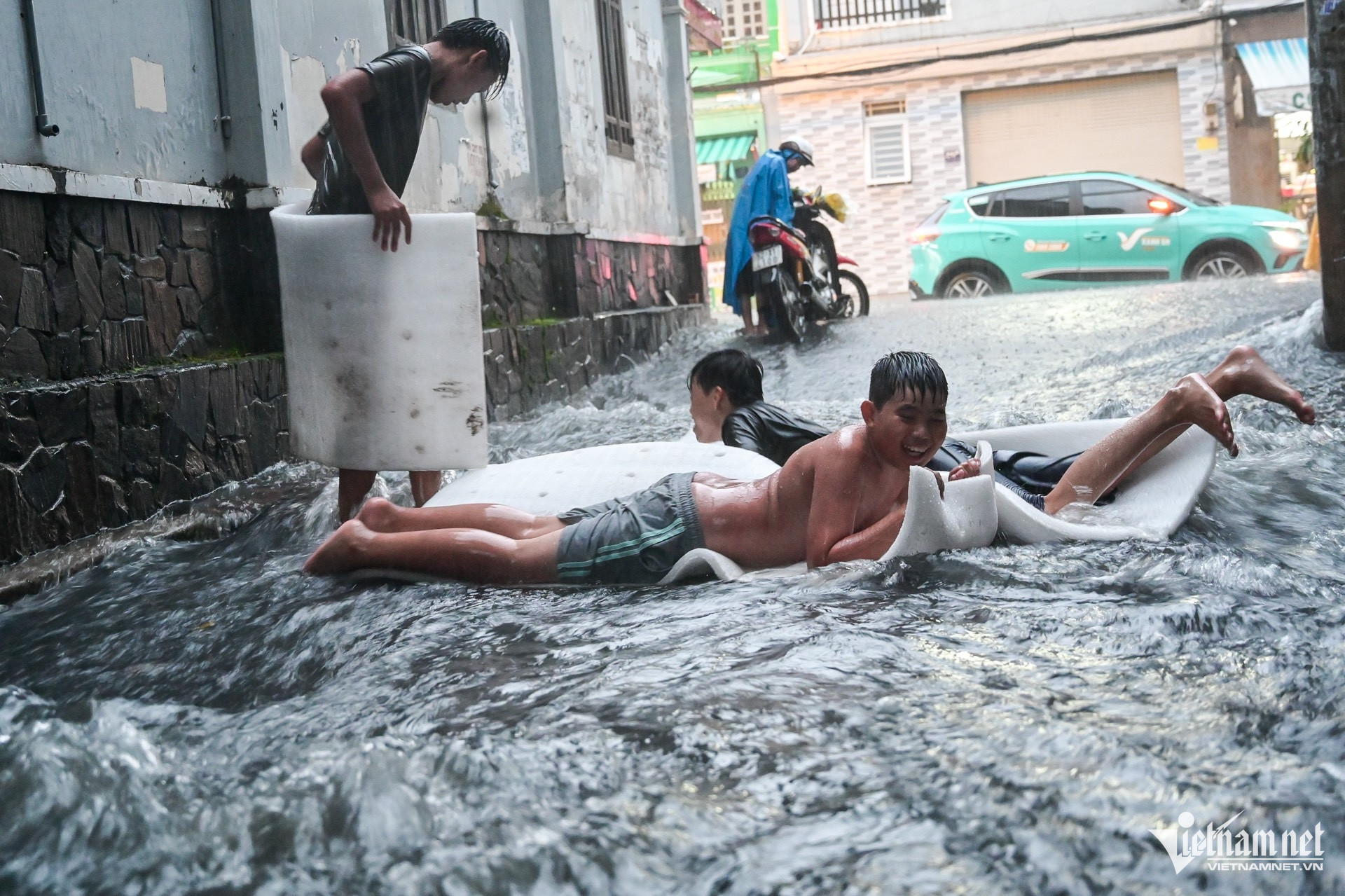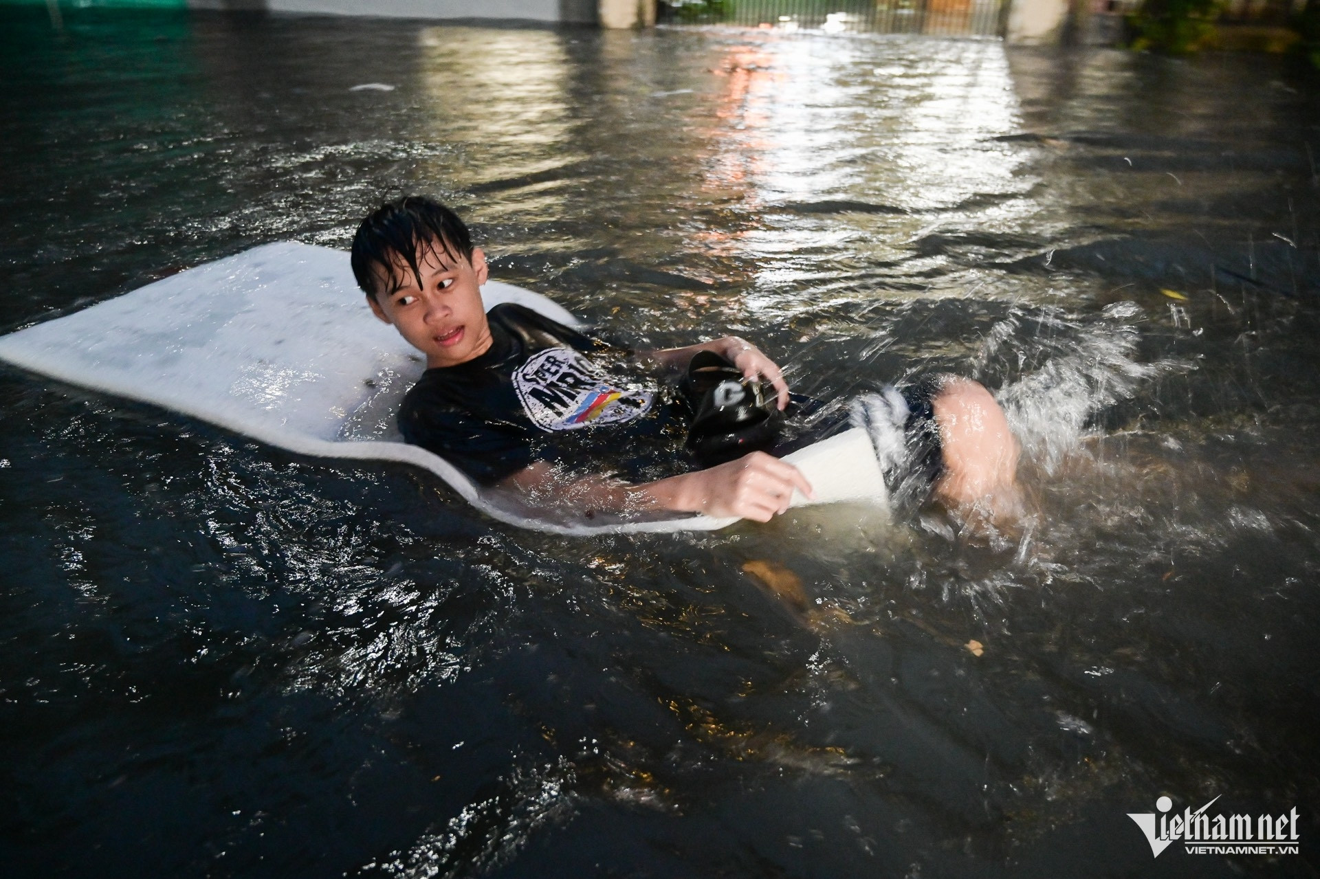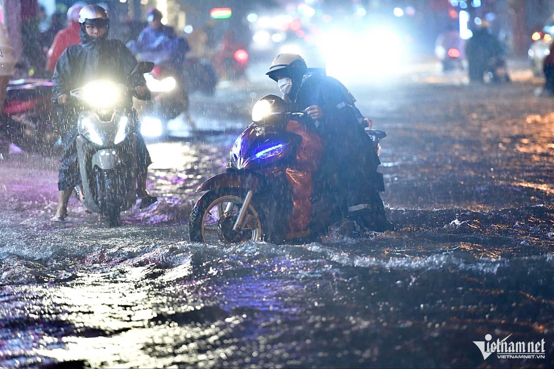 Tại 'rốn ngập' chợ Thủ Đức gồm các tuyến đường Dương Văn Cam, Đặng Thị Rành, Hồ Văn Tư, Tô Ngọc Vân... xảy ra ngập nặng hơn nửa mét.