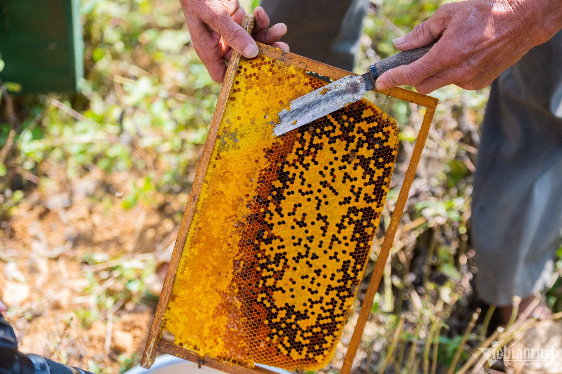 Mỗi tổ ong hình chữ nhật đặt từ 4-5 chiếc khung sáp. Ong đi kiếm mật tùy thời tiết 10-12 ngày cho thu hoạch.