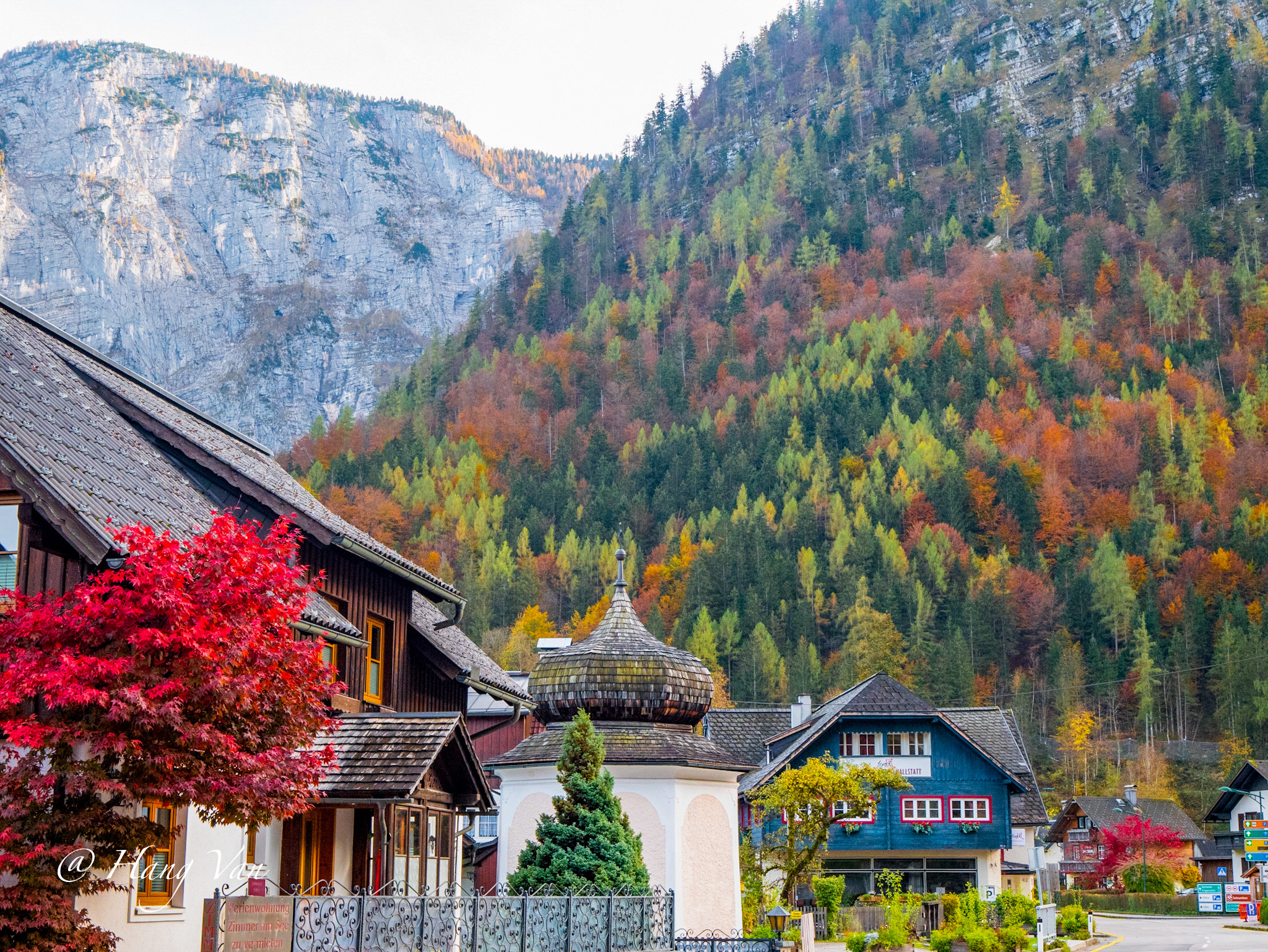 Tháng 10 năm nay, gia đình chị Hằng chọn vùng núi Salzburger Land ở Áo là điểm đến và không quên ghé thăm Hallstatt, thị trấn được mệnh danh là 'ngôi làng cổ tích'. Thị trấn này được UNESCO công nhận là di sản văn hóa thế giới vào năm 1997, nơi đây cũng là một trong những địa điểm thu hút khách du lịch hàng đầu châu Âu.