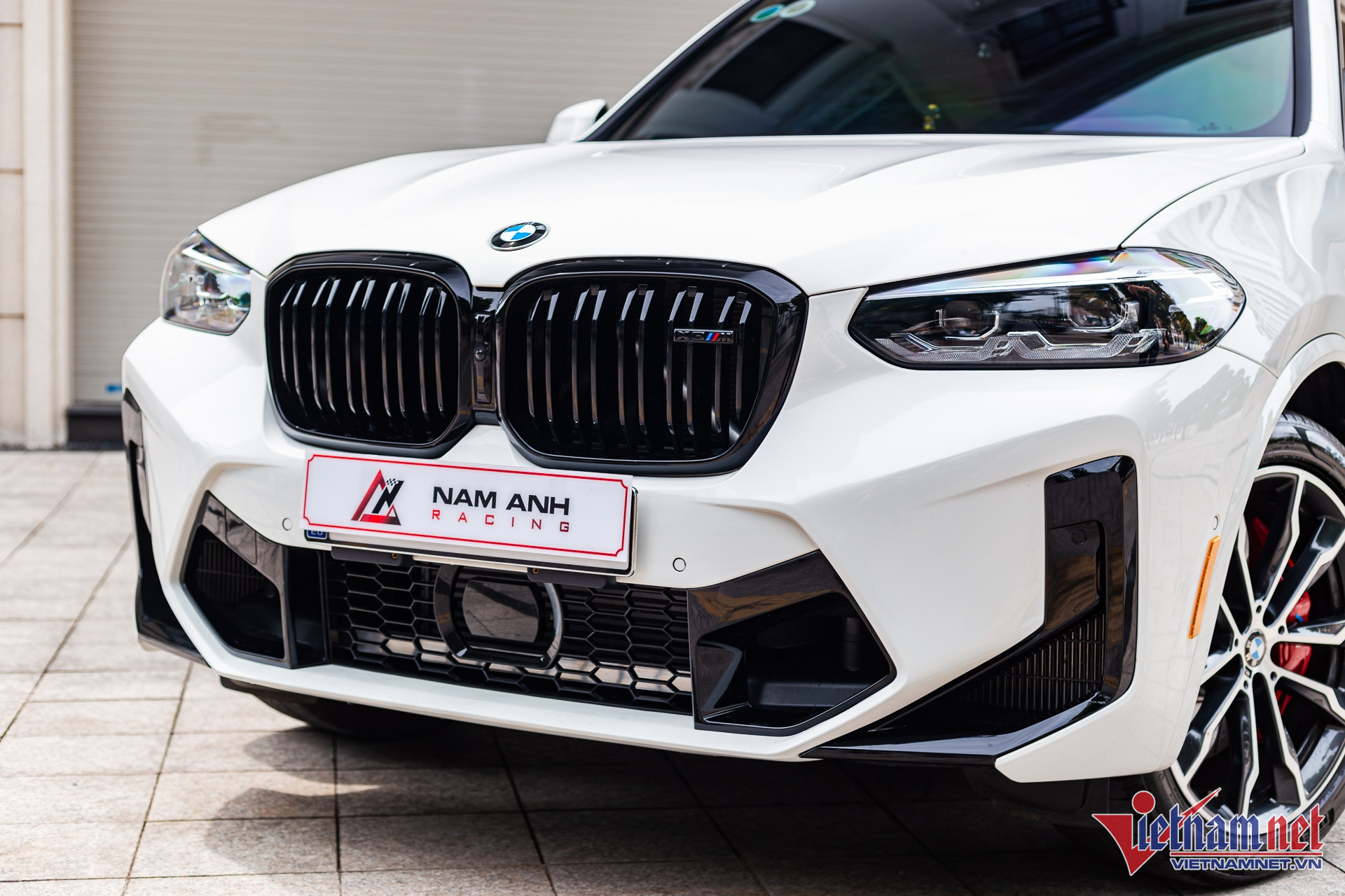 Cản trước thay đổi nhiều nhất, với hai hốc gió góc cạnh vuốt dài hai bên kèm bộ ốp sơn màu đen bóng. Chính giữa chia thành ba khoang, gồm hốc gió lớn chính giữa cùng hai hốc gió giả hai bên. So với bộ bodykit M Sport trên các mẫu X3 bán tại nước, bản M có bodykit gân guốc, hầm hố hơn.