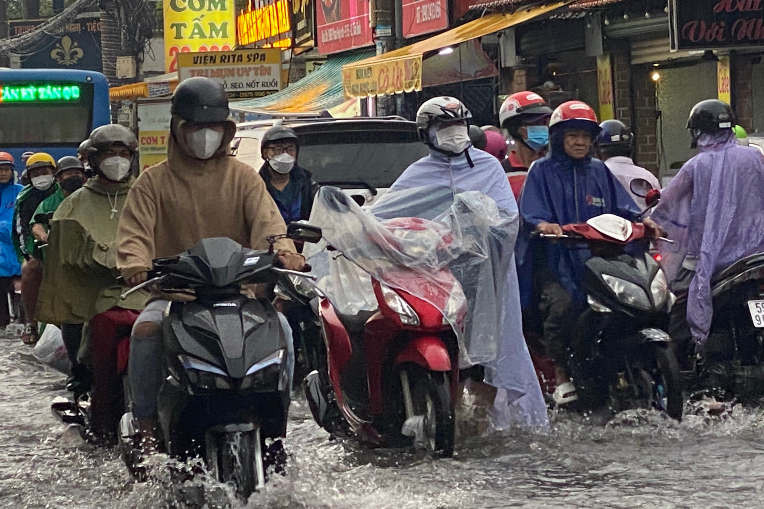 Từ khoảng 15h30 chiều 17/8, tại TP.HCM có mưa lớn trên diện rộng kéo dài hơn một giờ. Do mưa xuống nước không thoát kịp đã gây ngập nhiều tuyến đường.