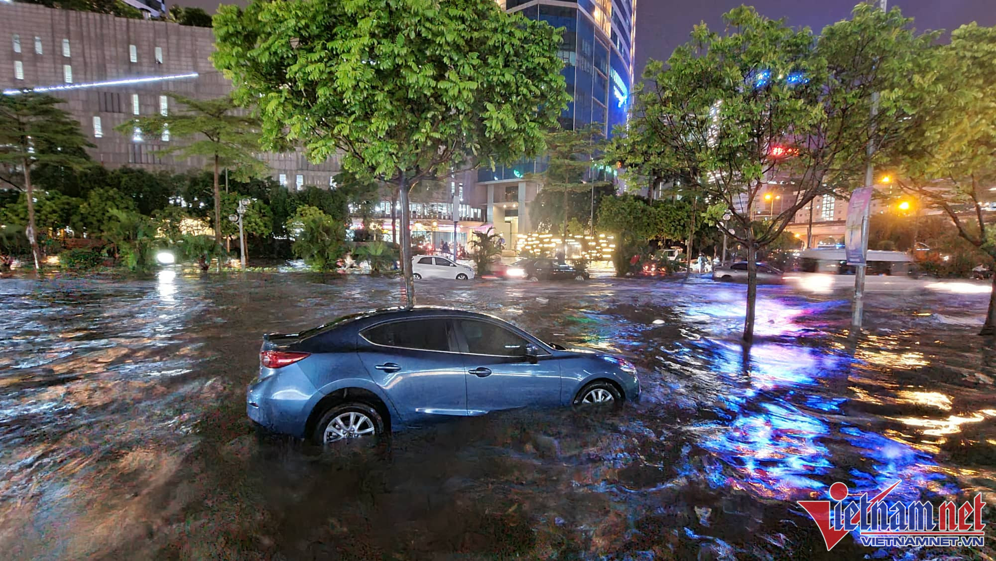 Mưa lớn khiến nhiều tuyến đường Hà Nội ngập sâu và kẹt xe kéo dài hàng giờ.