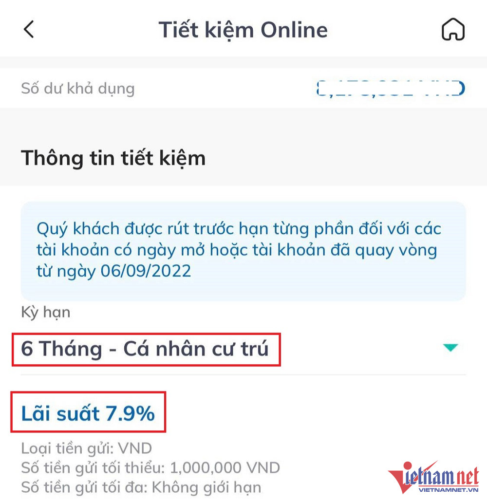 Đối với Ngân hàng TMCP Đầu tư và Phát triển Việt Nam (BIDV), nhà băng này công bố lãi suất tiết kiệm kỳ hạn 6 tháng là 6%/năm. Thế nhưng, lãi suất thực nhận khi gửi tiết kiệm online lên đến 7,9%.