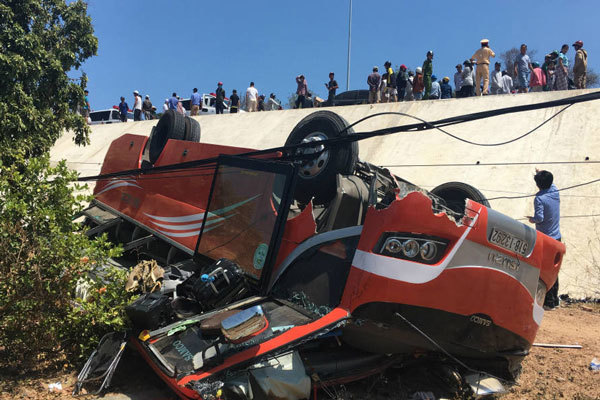 Trưa nay, xe khách BKS 51B-132.92 lưu thông hướng Mũi Né đi trung tâm Phan Thiết bất ngờ lao xuống vực khiến nhiều người bị thương.