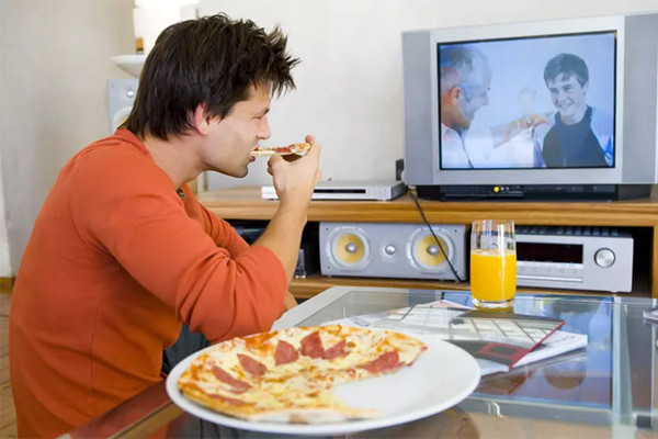 Đây có vẻ là một cách thư giãn vô hại, nhưng thực tế không phải vậy. Vừa ăn vừa xem tivi khiến bạn phân tâm và có thể dẫn tới hấp thụ không kiểm soát.