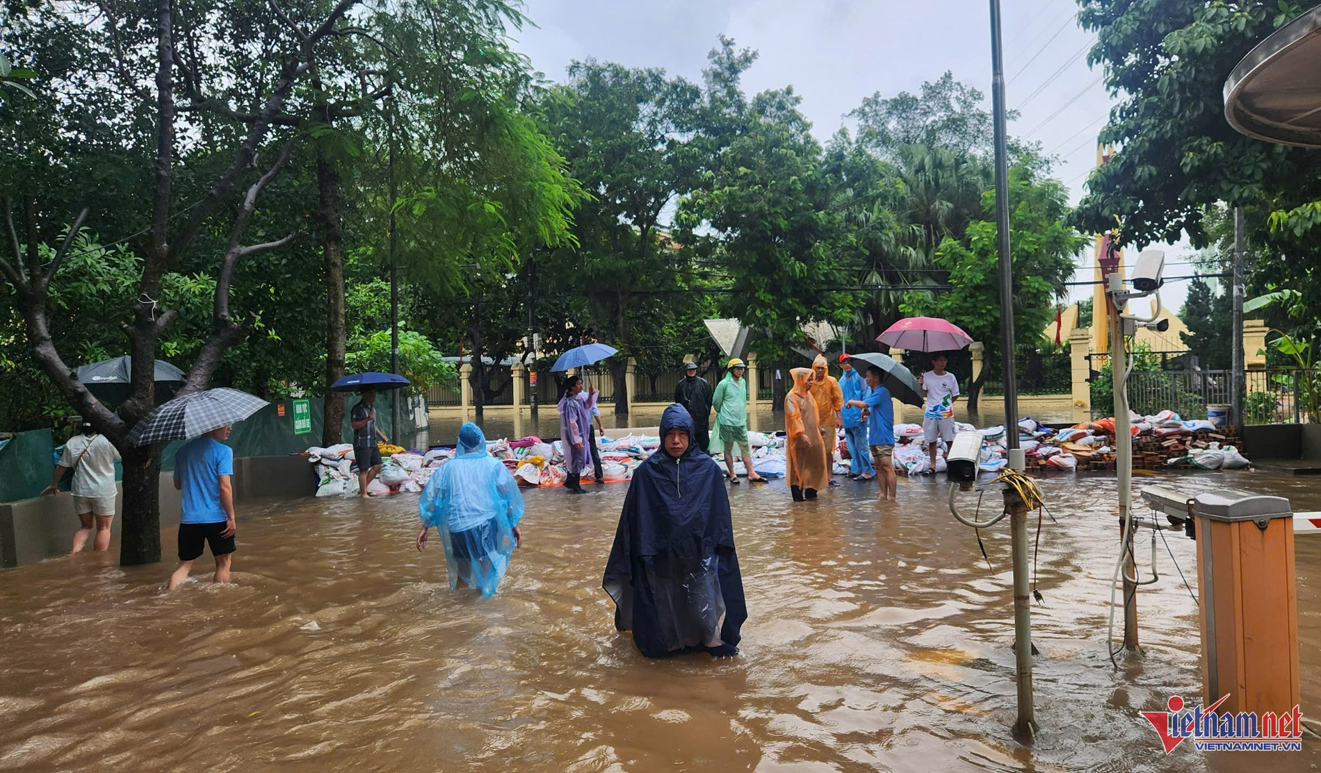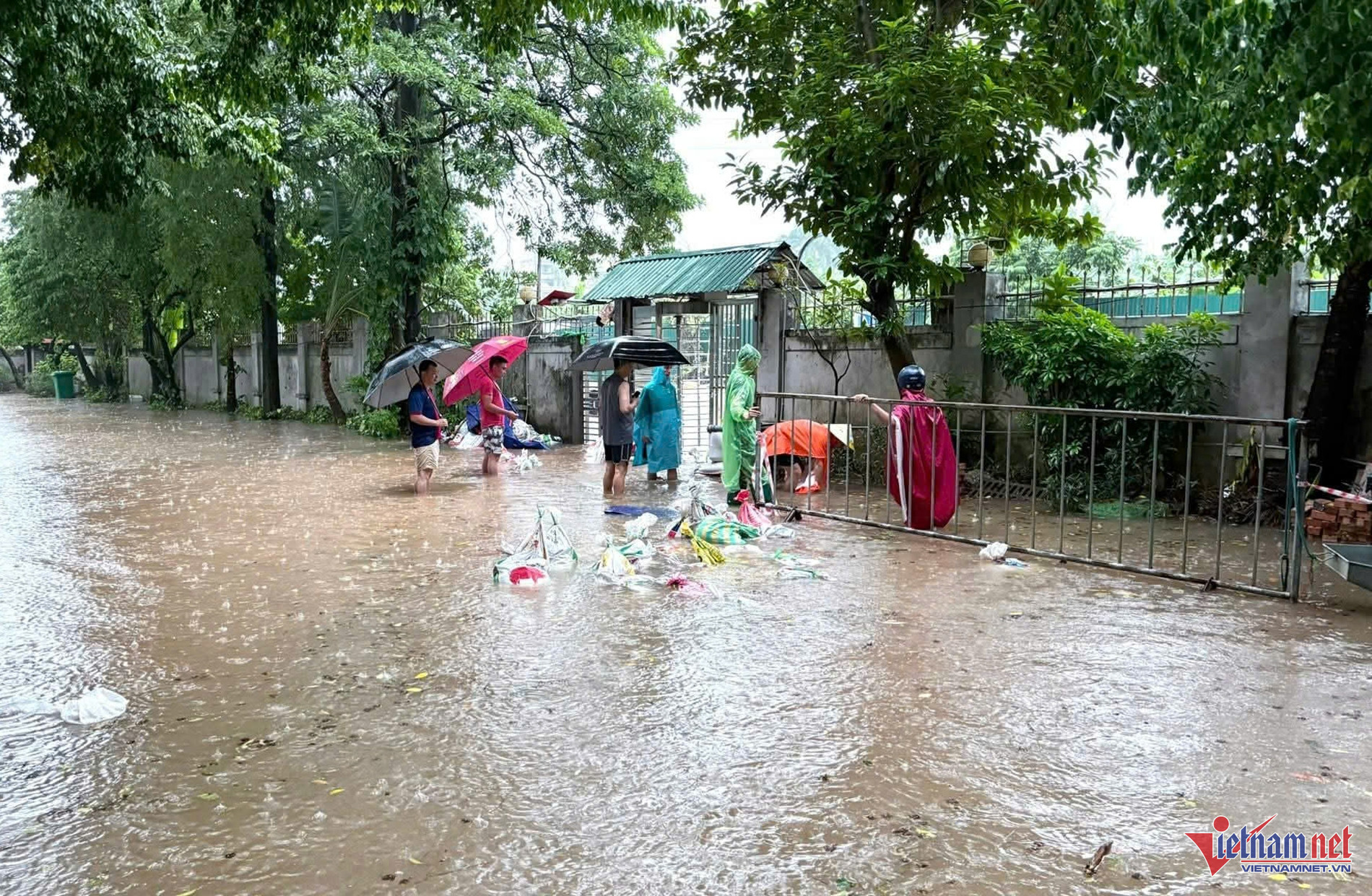Không chỉ các khu dân cư, mà nhiều trường học trên địa bàn phường Đông Ngạc cũng bị ảnh hưởng nặng nề. Tại Trường Tiểu học Đông Ngạc, nước ngập sâu gần 1m khiến công tác dạy học buộc phải tạm dừng.