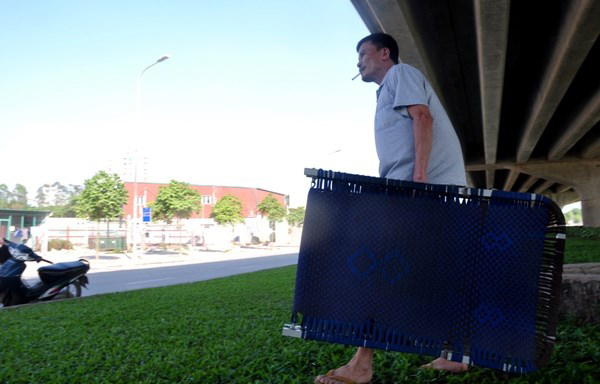 Gầm cầu vượt khu vực ngã tư giao cắt đường Trần Duy Hưng - Khuất Duy Tiến là nơi được nhiều người lựa chọn nghỉ ngơi những trưa nắng gắt.