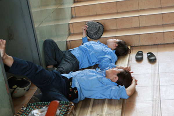 Họ hầu hết là những người lao động các công trường xung quanh, vừa tới đây trốn nắng, vừa tranh thủ ngủ nghỉ.