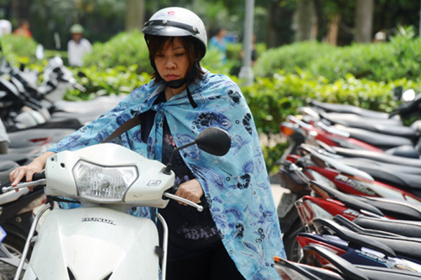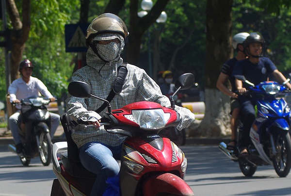 Áo chống nắng, khẩu trang kín bưng là hình ảnh thường thấy của phụ nữ Hà Nội những ngày nắng gắt.