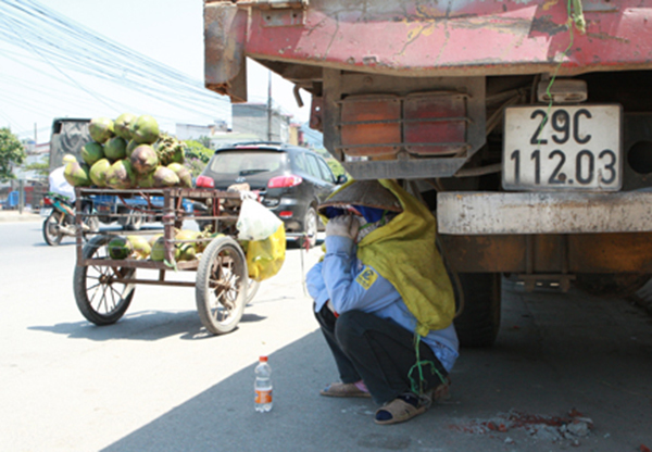 Gầm xe tải được một vài người bán hàng rong chọn làm nơi trốn nắng.