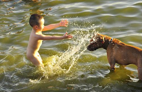 Không ít người mang theo cả con nhỏ và thú cưng tới đây tắm mát.