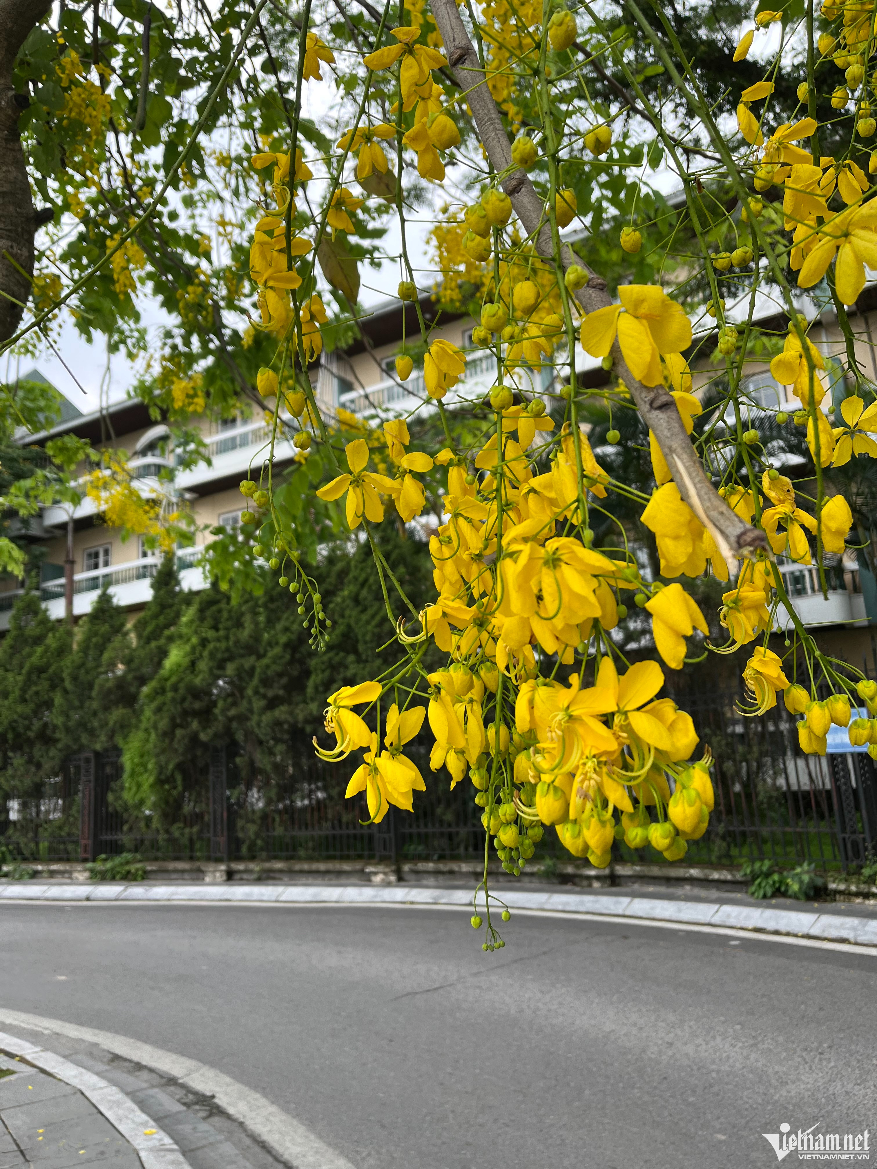 Những cây Muồng hoàng yến ven Hồ Tây thân nhỏ, khẳng khiu nhưng vàng trĩu những chùm hoa dài tuyệt đẹp như những chiếc đèn lồng rủ xuống, đong đưa trong gió, níu bước chân người qua. Để cả những người không chủ định, cũng phải dừng lại để ngắm nhìn, chụp ảnh.