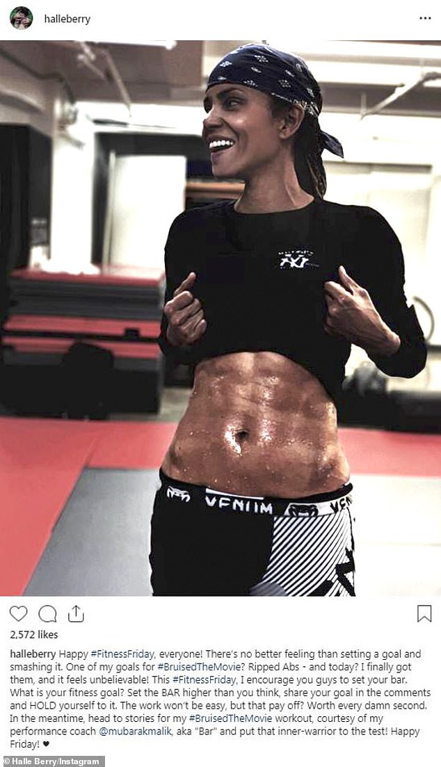 Gần đây, Halle Berry đang chuẩn bị thể lực cho bộ phim về đề tài võ thuật MMA có tên Bruised do cô đạo diễn và đóng chính. Mới đây trên trang cá nhân, Berry khoe loạt ảnh luyện thể lực trong phòng gym.