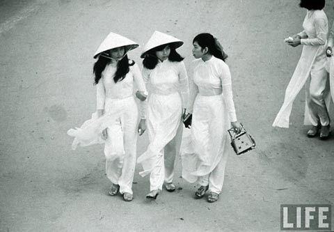 3 cô gái xinh đẹp trong tà áo dài thướt tha dạo phố. |