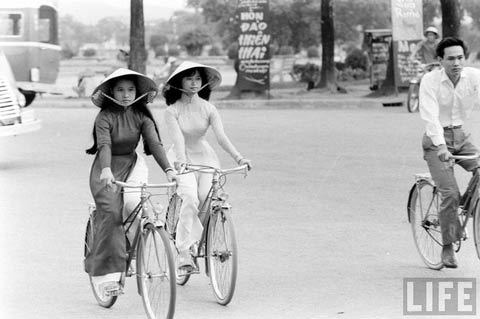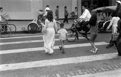 Vẻ đẹp "thắt đáy lưng ong" của các mỹ nữ Việt trong tà áo dài vào giữa thế kỷ 20 nổi bật giữa phố đông, thu hút mọi ánh nhìn.