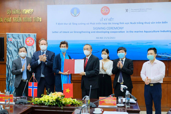 Bộ NN&PTNT Việt Nam và Bộ Công thương và Thủy sản Na Uy đã ký kết Ý định thư về Tăng cường và Phát triển Hợp tác giữa hai nước trong lĩnh vực nuôi trồng thủy sản trên biển.