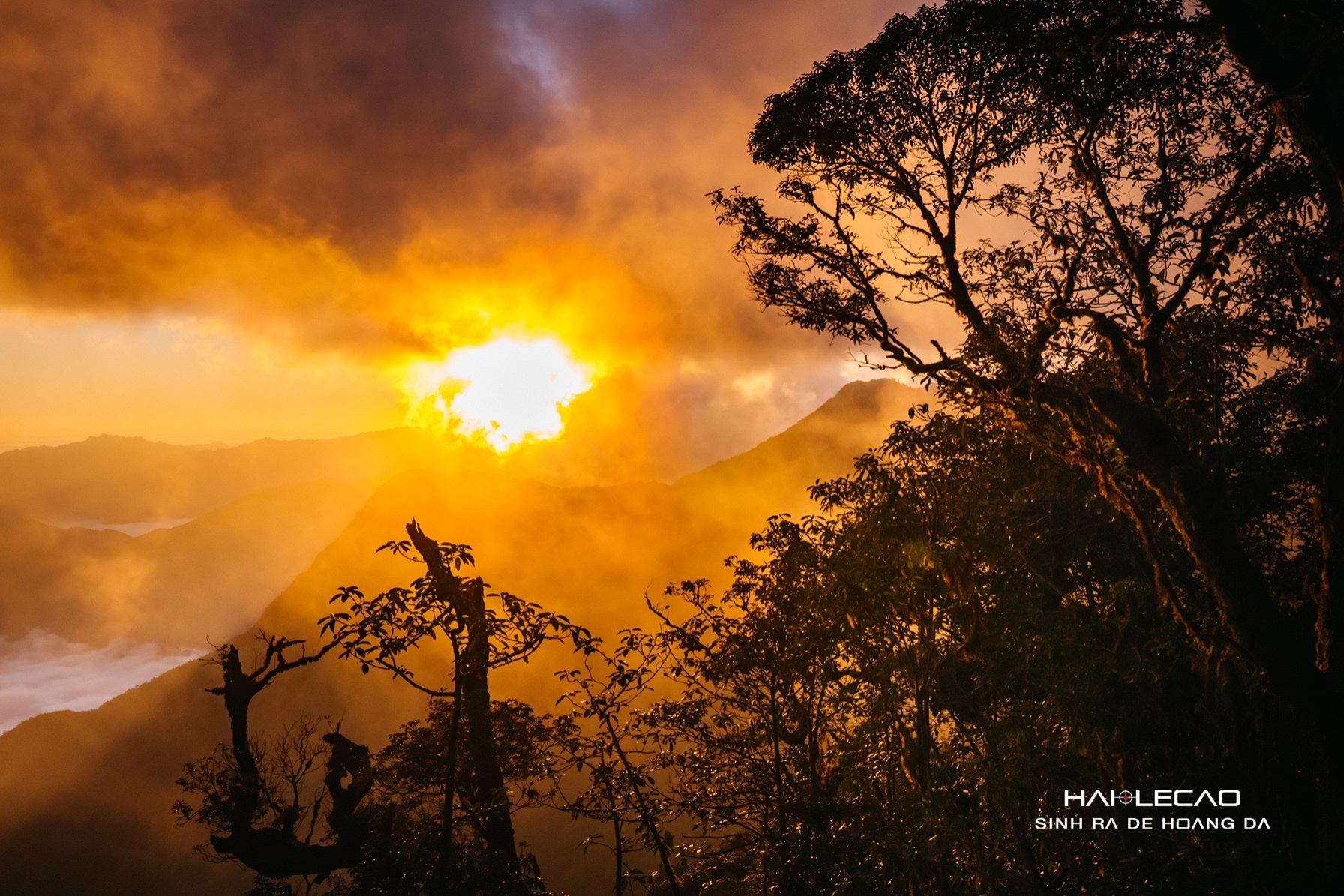 Chúng tôi nghỉ đêm ở Lán 2. Sáng hôm sau, tôi dậy sớm đón bình minh ngay cạnh khu vực lán, ăn sáng, sửa soạn đồ để leo lên đỉnh.