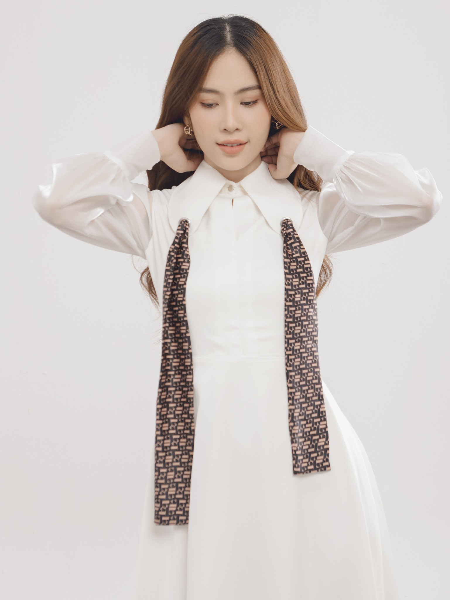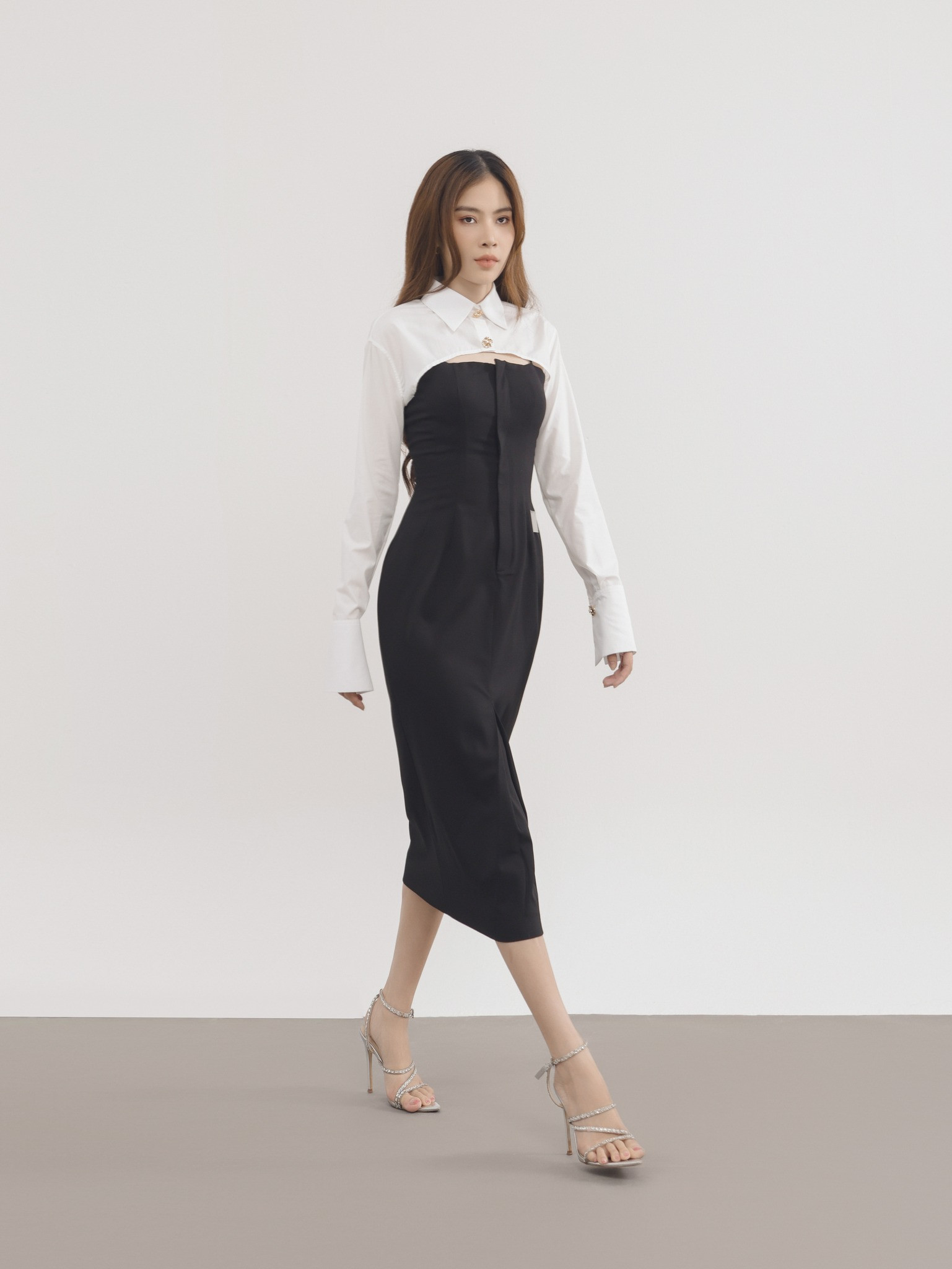 Người đẹp thực hiện loạt ảnh mới trong trang phục chuẩn công sở với hai tông màu trắng - đen quen thuộc. Nhiều người quan niệm trắng và đen là hai màu mang tính chất vẹn toàn, tổng hòa mọi màu sắc nên dễ dàng kết hợp với các màu khác. Dù không bao giờ lỗi thời nhưng trang phục đen - trắng đôi khi lại tạo sự nhàm chán, thiếu đột phá dù luôn phù hợp với mọi lứa tuổi và phong cách.