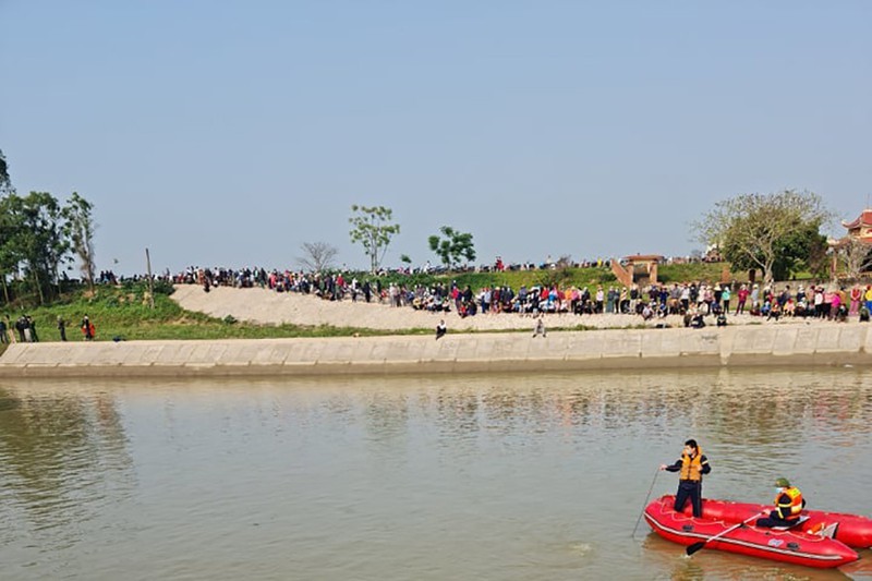 Đến 20h cùng ngày, gia đình các cháu đi tìm thì phát hiện xe đạp, điện thoại và 3 đôi dép nhựa của các cháu tại bờ đập thuộc thôn Thắng Long, xã Thiệu Hợp.