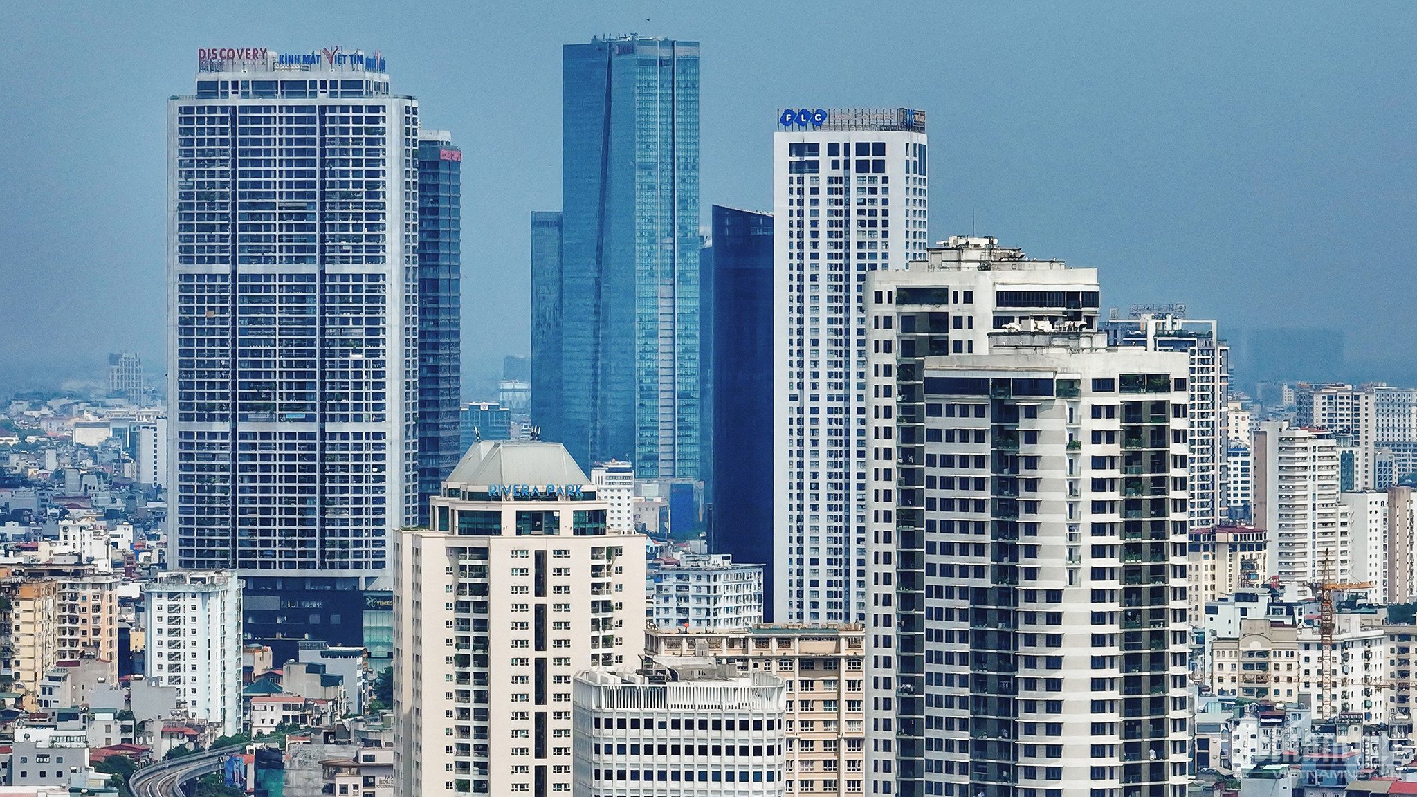 Tính đến đầu năm 2023, nội thành Hà Nội vẫn được tiếp tục thi công nhiều dự án trong đó 26 tòa nhà đã cất nóc (bao gồm 14 tòa trên 100m) và 64 tòa đang trong quá trình thi công. (Trong ảnh tuyến đường phía phải là phố Trung Kính, quận Cầu Giấy).