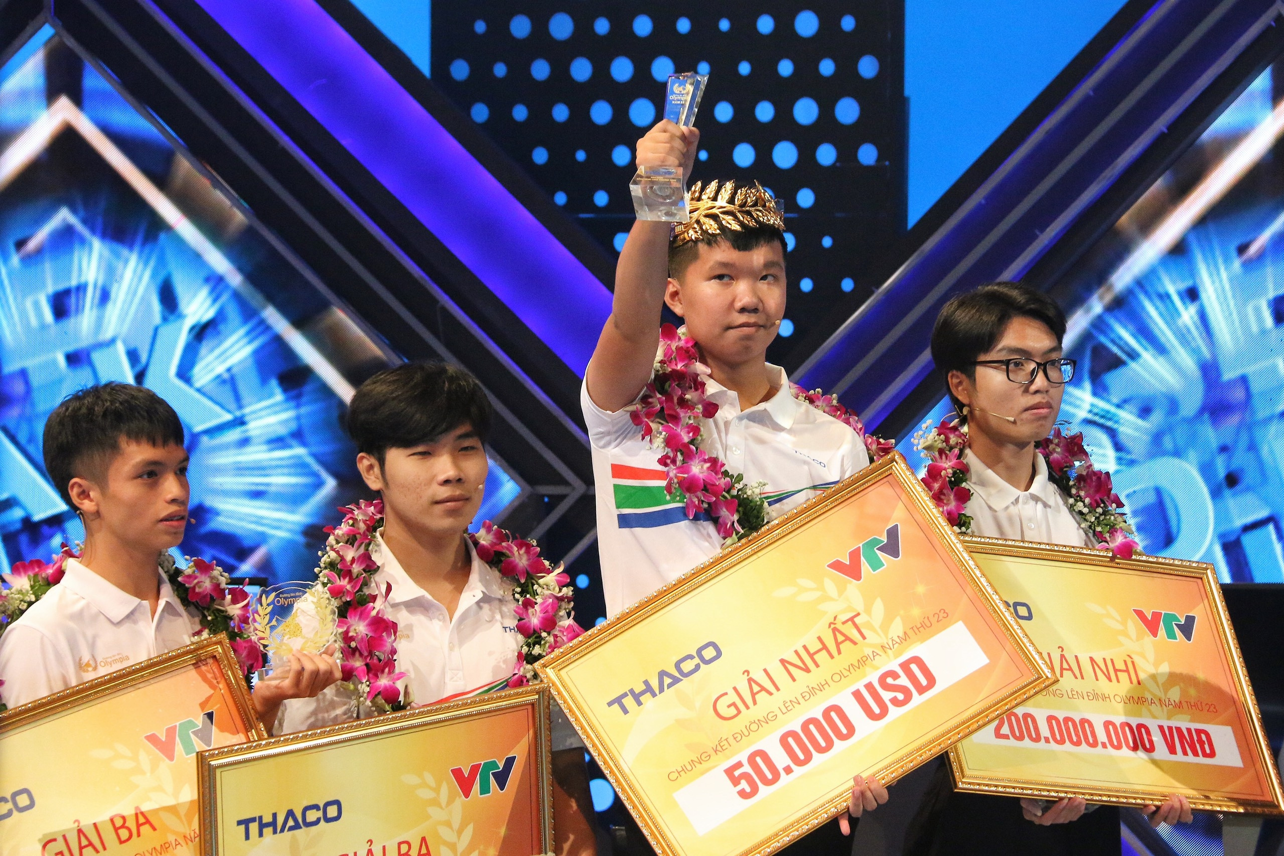 Nguyễn Minh Triết, lớp 11 Lý 1, Trường THPT Chuyên Quốc học (Thừa Thiên Huế) vừa giành chiến thắng thuyết phục trong cuộc thi quý 2 Đường lên đỉnh Olympia năm 2023 với 290 điểm. Qua đó, em không chỉ có vòng nguyệt quế mà còn mang cầu truyền hình trận chung kết năm về với Trường THPT Chuyên Quốc học.