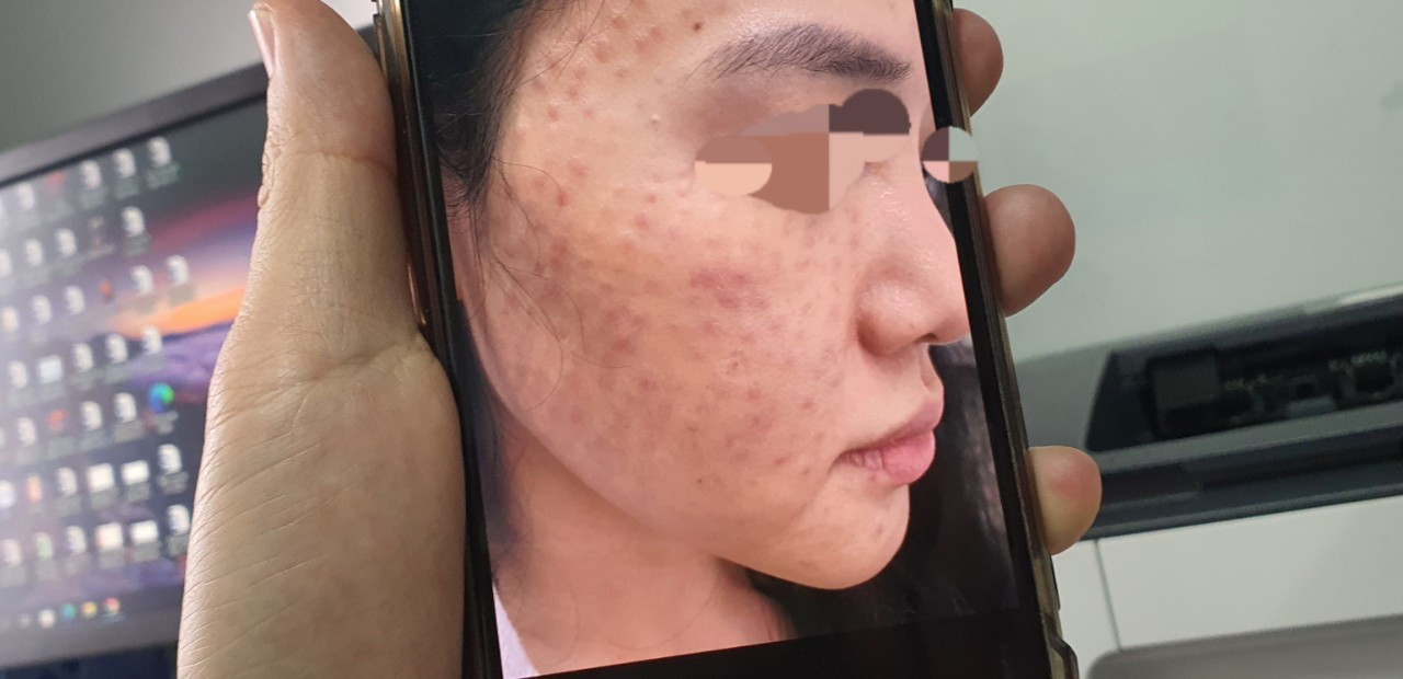 Khi quay lại spa, nam thanh niên được nhân viên cơ sở này chích, nặn, tiêm thuốc giải filler mong nốt sẩn tan nhanh nhưng không đỡ. Sau 1 tháng, anh đến Bệnh viện Da liễu Trung ương khám với gương mặt chi chít nốt sần, tấy đỏ, cảm giác bứt rứt, khó chịu. Từ sau khi tiêm, thay vì da đẹp, anh lại phải đeo khẩu trang mỗi khi ra đường vì không muốn ai nhìn thấy gương mặt lạ.