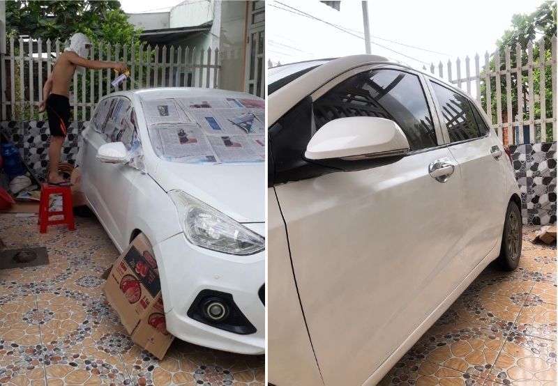 Trên diễn đàn của người dùng xe Hyundai Grand i10 tại Việt Nam mới đây được phen “dậy sóng” vì màn khoe tự sơn xe của một thành viên. Anh Đặng Chuẩn (Biên Hòa, Đồng Nai) đã mất một ngày để hoàn thành việc tự sơn chiếc Hyundai Grand i10 đời 2016 của mình bằng 15 bình xịt cầm tay, gồm khoảng 10 bình sơn màu trắng và 5 bình sơn bóng.