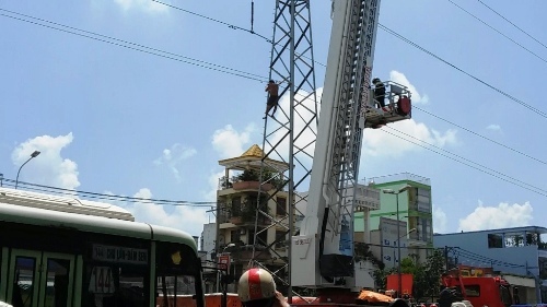Gần 2 giờ giải cứu nam thanh niên leo trụ điện cao thế