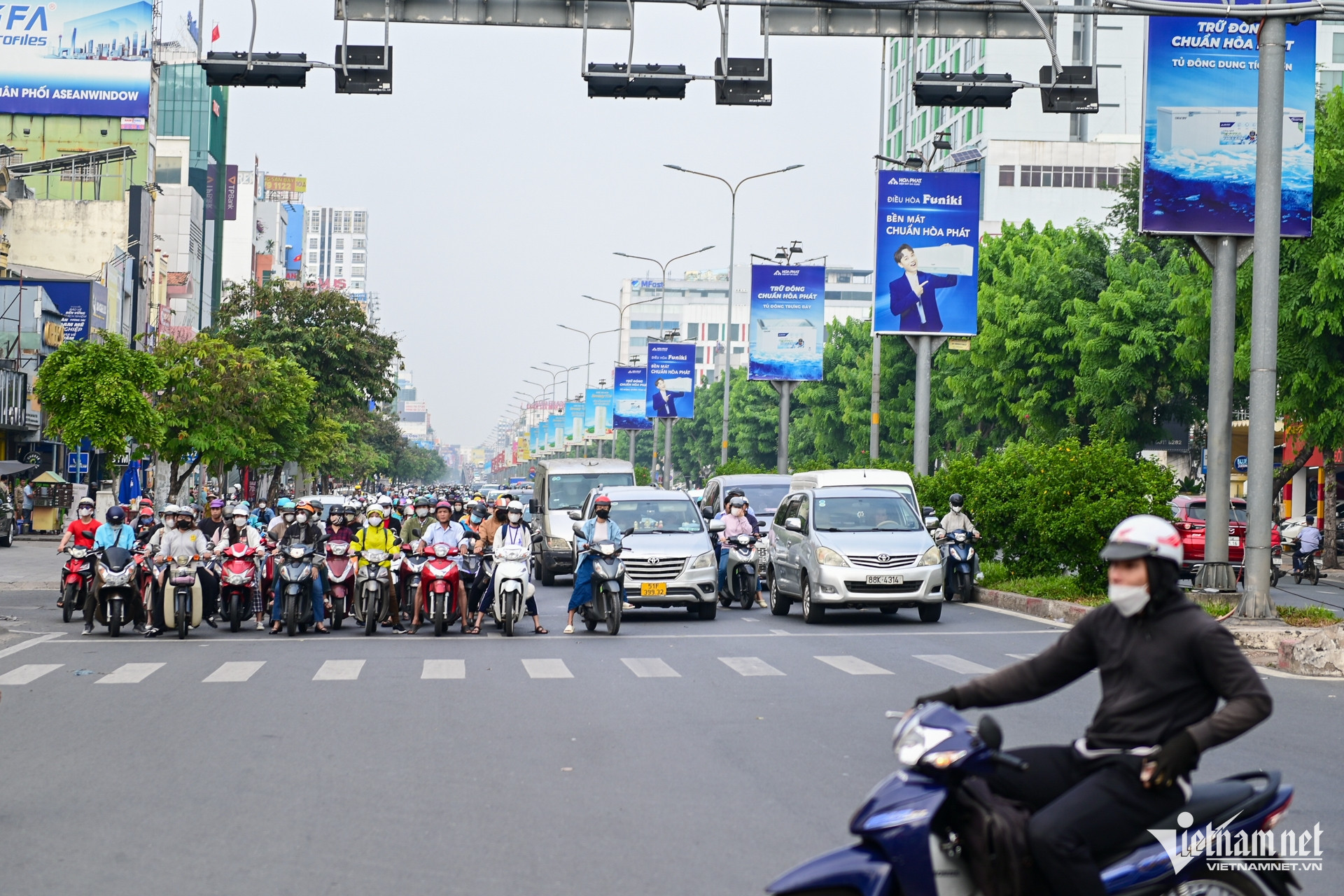 Tại giao lộ Út Tịch - Cộng Hòa (quận Tân Bình), ngay từ đầu giờ sáng, Đội CSGT Tân Sơn Nhất đã bố trí lực lượng làm nhiệm vụ phân luồng, tuyên truyền nhắc nhở người tham gia giao thông. Theo ghi nhận của PV VietNamNet, đa số người dân chấp hành tín hiệu đèn đỏ, song vẫn xuất hiện các lỗi đi ngược chiều, đi lên vỉa hè, chở hàng cồng kềnh,...
