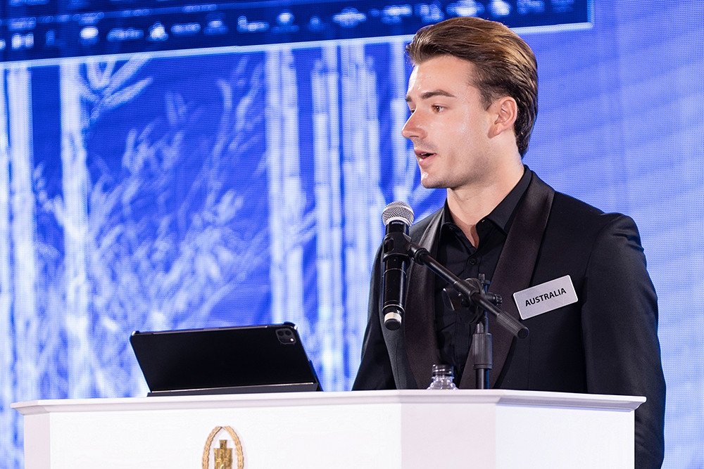 Xuất hiện trong bộ vest đen lịch lãm, Phạm Tuấn Ngọc đã có phần trình bày ấn tượng kéo dài hơn 3 phút về hai dự án nổi bật: Một vòng Việt Nam và Gõ cửa - Sửa nhà. Trong bài phát biểu, anh chia sẻ về hành trình từ một cậu bé mơ ước trở thành siêu anh hùng đến việc thực hiện những dự án cộng đồng thiết thực.