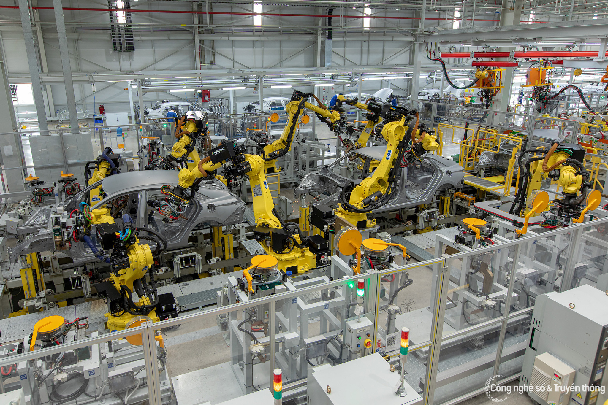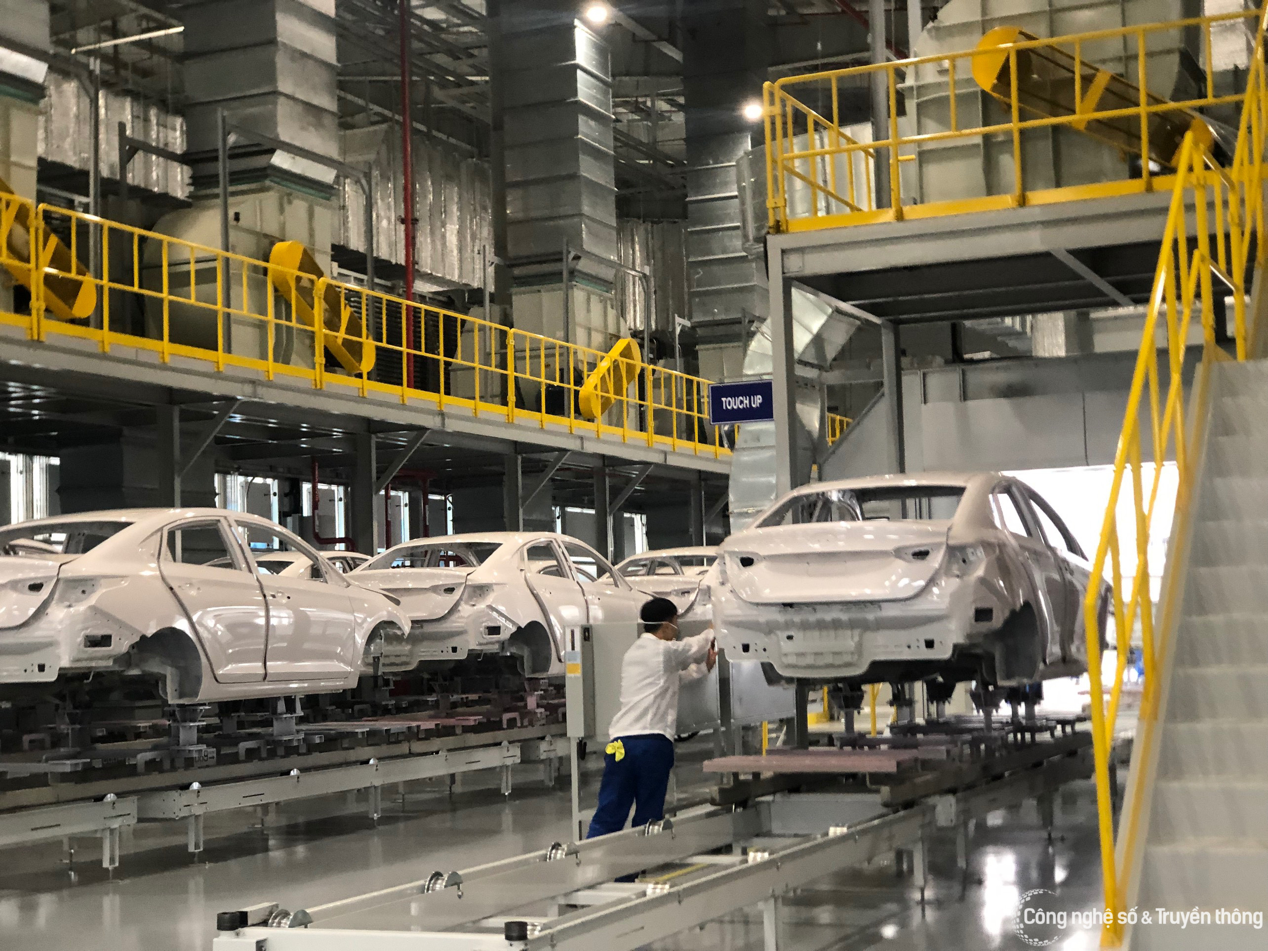 Xưởng sơn cũng áp dụng tự động hóa vào các vị trí quan trọng ảnh hưởng đến chất lượng, an toàn trong sản xuất thông qua hệ thống robot của nhà cung cấp tự động hóa hàng đầu thế giới là ABB tại các công đoạn phủ keo gầm, phun sơn và xử lý bề mặt chi tiết nhựa. Việc áp dụng robot giúp đảm bảo chất lượng sơn ở mức cao nhất, đồng thời tiết kiệm vật liệu đến 60%, giảm phát thải ra môi trường.