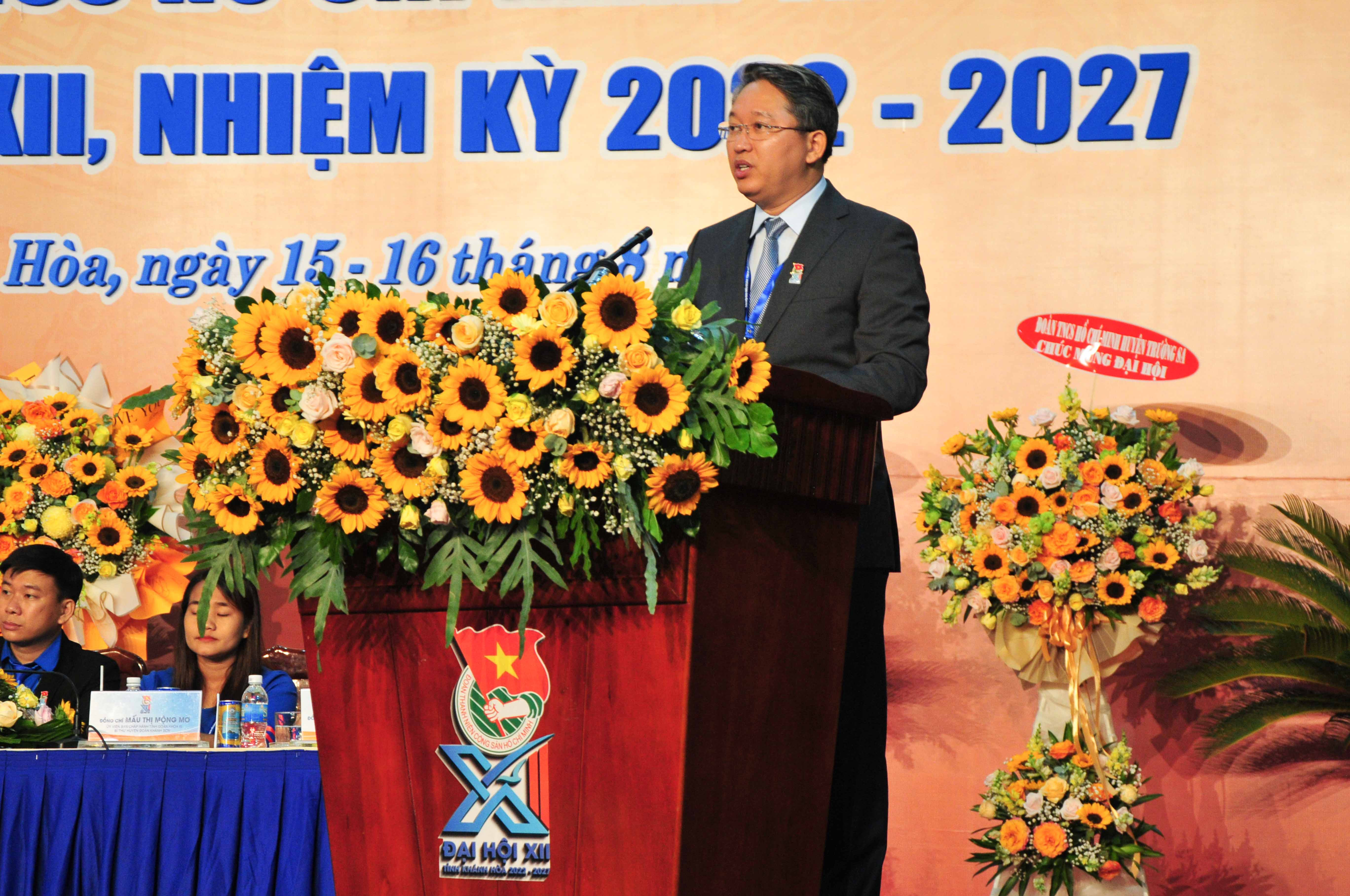 Nhân dịp Đại hội này, tôi đề nghị các cấp ủy Đảng, chính quyền, các ban, ngành, đoàn thể tiếp tục tin tưởng, động viên, giao nhiệm vụ cho tổ chức Đoàn; thường xuyên quan tâm, theo dõi, tạo mọi điều kiện thuận lợi nhất cho đoàn viên thanh niên tham gia vào các nhiệm vụ chính trị, kinh tế, xã hội địa phương; phát huy vai trò của đảng viên trẻ trong các tổ chức quần chúng địa phương; có kế hoạch cụ thể, thường xuyên rà soát, bổ sung quy hoạch, quan tâm công tác đào tạo, bồi dưỡng, thử thách cán bộ trẻ để họ phát huy khả năng, được cống hiến và trưởng thành; tạo điều kiện thuận lợi để Đoàn Thanh niên triển khai và thực hiện thắng lợi Nghị quyết Đại hội đại biểu Đoàn TNCS HCM tỉnh lần thứ XII, nhiệm kỳ 2022 - 2027; góp phần thực hiện thắng lợi Nghị quyết Đại hội Đảng bộ tỉnh lần thứ XVIII và các Nghị quyết của Trung ương về xây dựng và phát triển tỉnh Khánh Hòa... xứng đáng với kỳ vọng của Đảng, tình cảm của đoàn viên, thanh niên và Nhân dân Khánh Hòa.