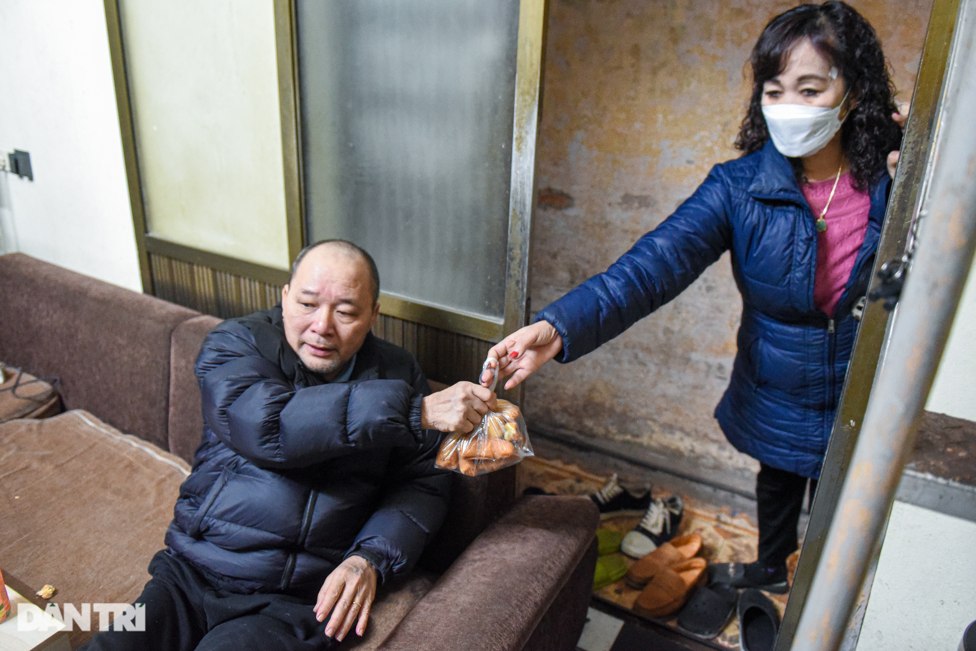 Trong ngôi nhà nhỏ của gia đình ông Toán, đồ đạc xếp chi chít bên nhau. Căn phòng khách cũng là phòng ngủ. Ở đây chỉ đặt vừa chiếc tivi cũ, hai chiếc tủ lạnh - một chiếc để đồ ăn gia đình, một chiếc đựng đồ bán nước hoa quả của vợ ông. Ông Toán tận dụng được gác xép để làm nơi ngủ cho hai vợ chồng và đặt ban thờ treo tường. Các con và cháu ngủ ngay tại phòng khách.