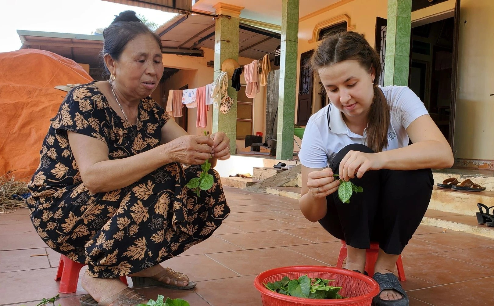 Yêu quý con dâu ngoại quốc, hàng ngày bà Là ân cần dạy Liza tiếng Việt. Không những thế, bà còn hướng dẫn con dâu nhặt rau, nấu những món ăn phổ biến của quê mình.