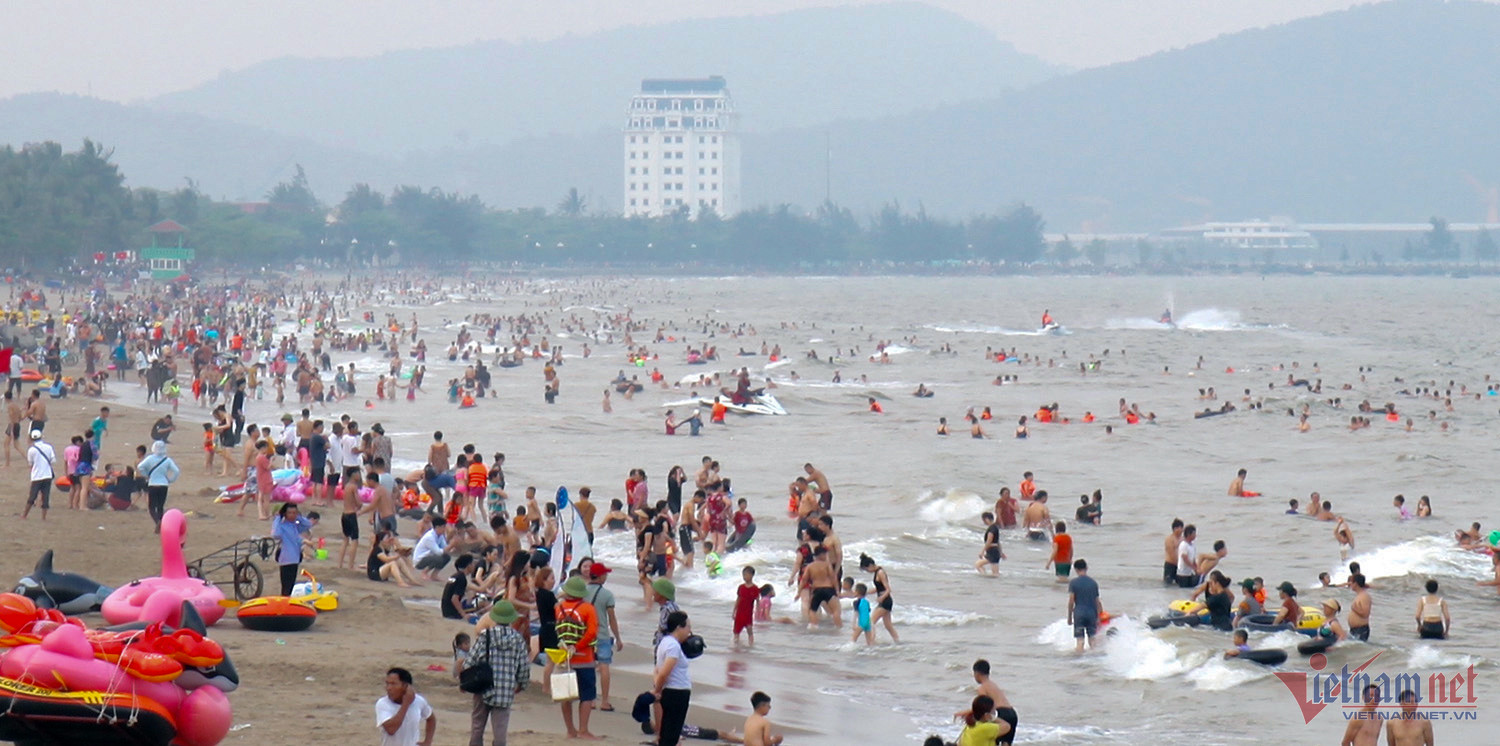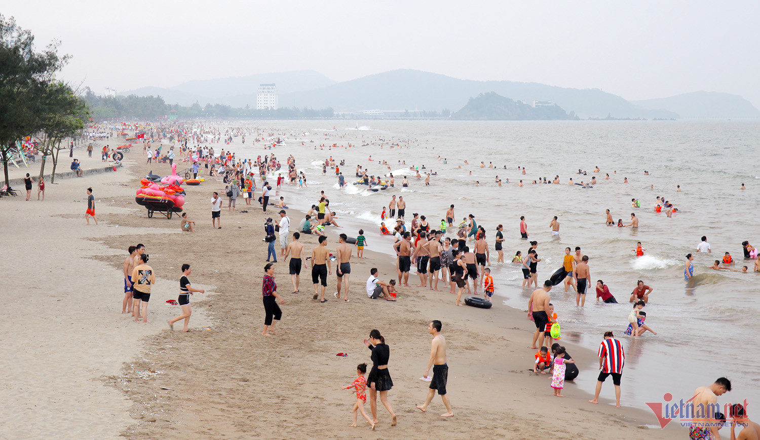 4h chiều 7/5, ghi nhận của VietNamNet, nền nhiệt độ nhiều nơi xấp xỉ 36 độ. Thời tiết nóng bức, nhu cầu giải nhiệt tăng cao, người dân và du khách đổ về chật kín phố biển Cửa Lò.