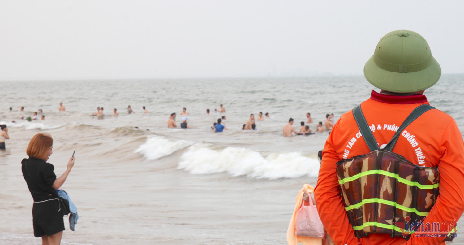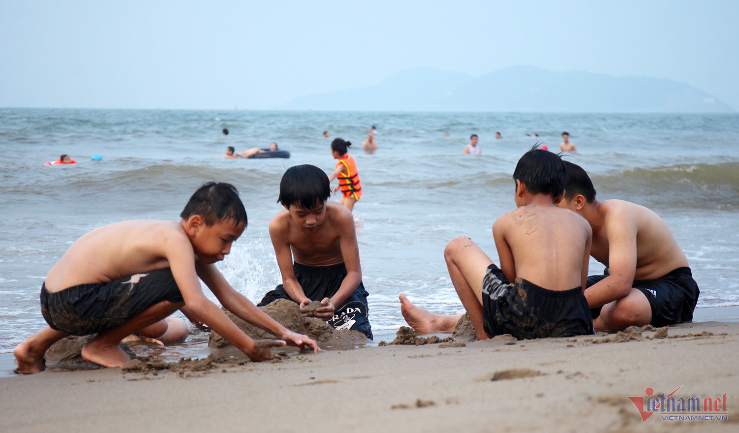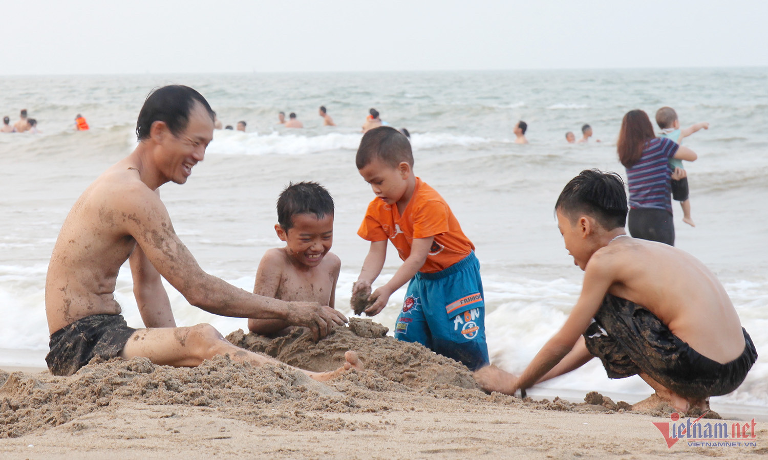 Anh Nguyễn Văn Thành (SN 1992, trú phường Trường Thi, TP Vinh) cho biết, ngày cuối tuần nắng nóng gay gắt nên gia đình anh cho con nhỏ xuống tắm biển.