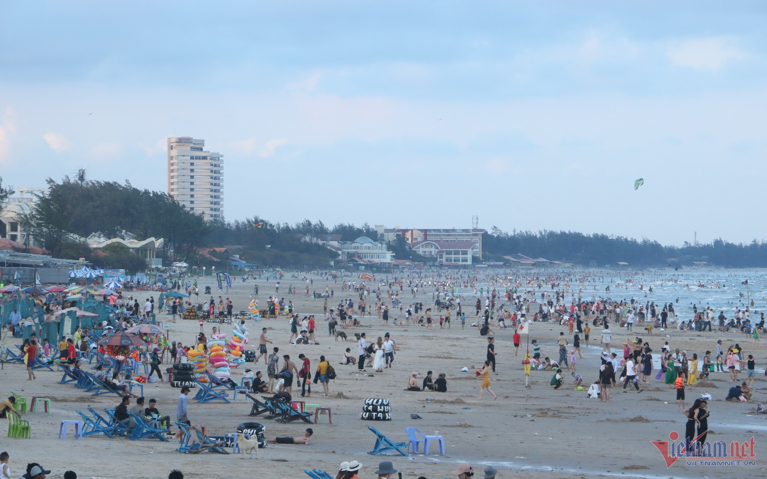 Càng về chiều tối, lượng khách đổ xuống biển càng đông. Tại khu vực bãi Trước, cũng có rất đông người dân địa phương tắm biển.