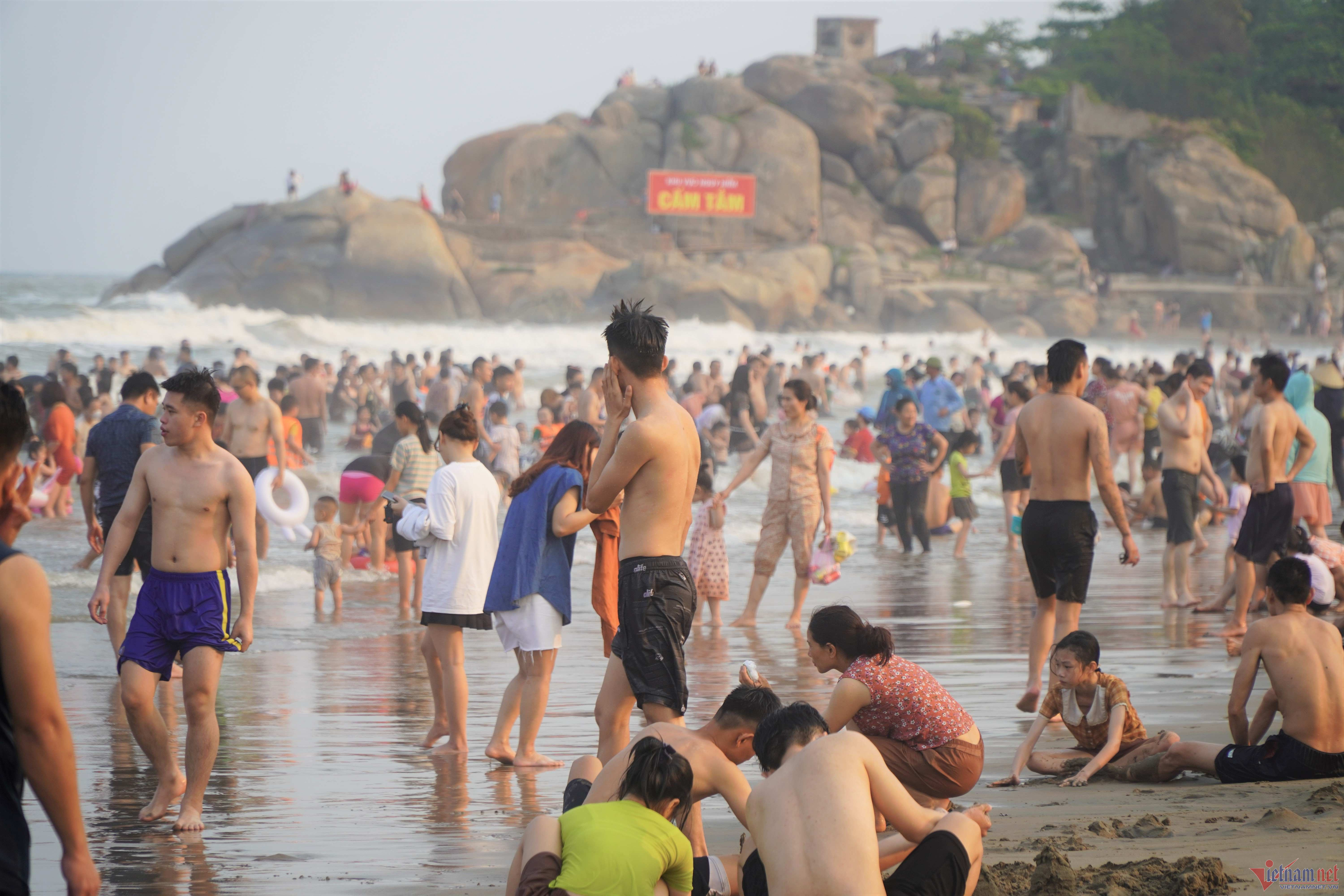 Đến 17h30’, lượng khách đổ về Sầm Sơn càng lúc càng đông, bãi biển “ken cứng” người.